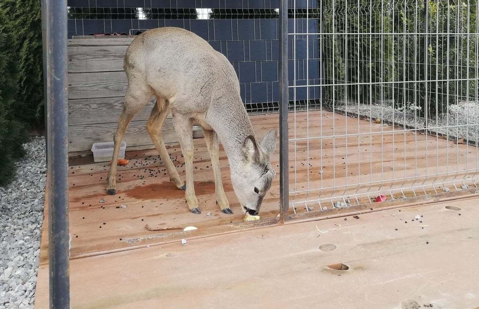 Koziołek dostał kroplówkę. Przebywa w zagrodzie z kilkoma innymi sarnami. Jego stan jest coraz lepszy. Zwierzę prawdopodobnie wyzdrowieje. A wszystko dzięki ludziom o dobrych sercach.