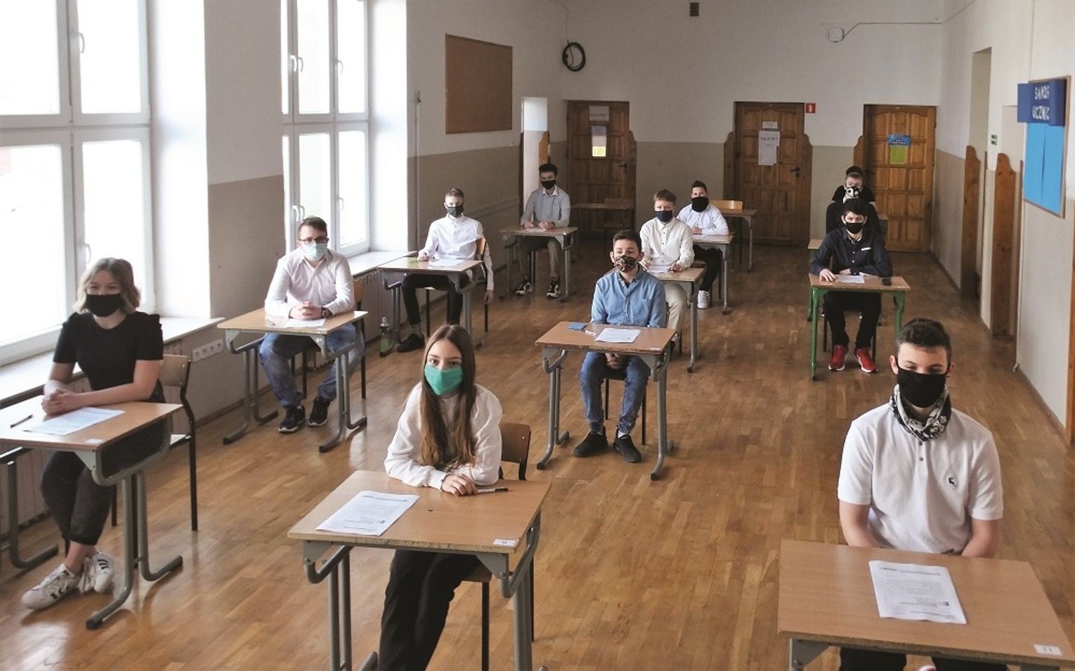 Uczniowie egzamin próbny pisali w salach lekcyjnych, po 10 osób, z zachowaniem wszelkich środków ostrożności.