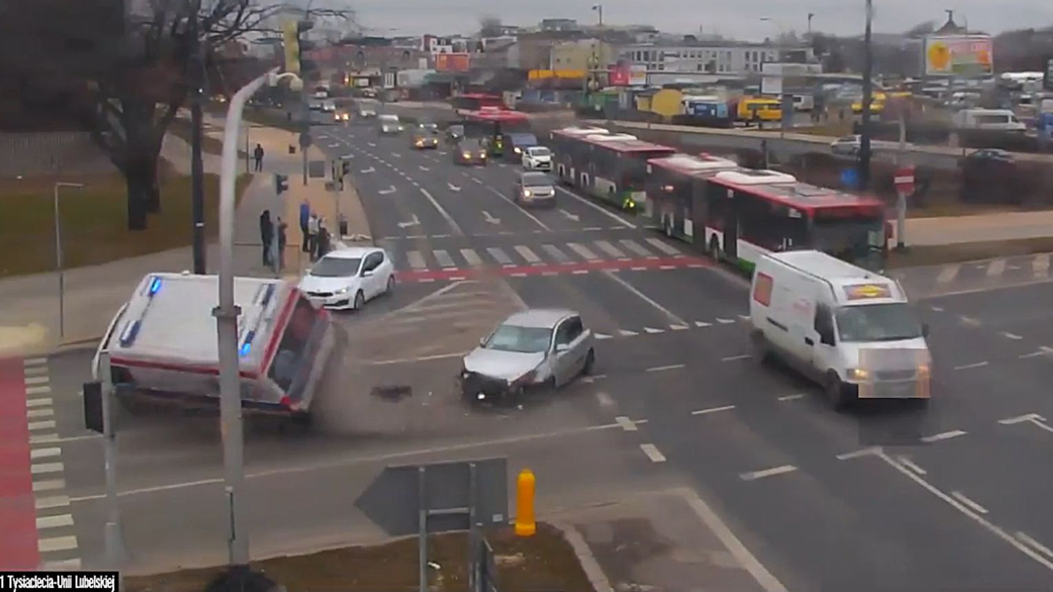 Do kolizji doszło we wtorek (23 marca) przed godziną 16 na skrzyżowaniu alei Tysiąclecia i Unii Lubelskiej w Lublinie. Ze wstępnych ustaleń policjantów wynika, iż kierujący karetką transportową na sygnałach świetlnych i dźwiękowych zjeżdżał z ronda w kierunku alei Unii Lubelskiej.