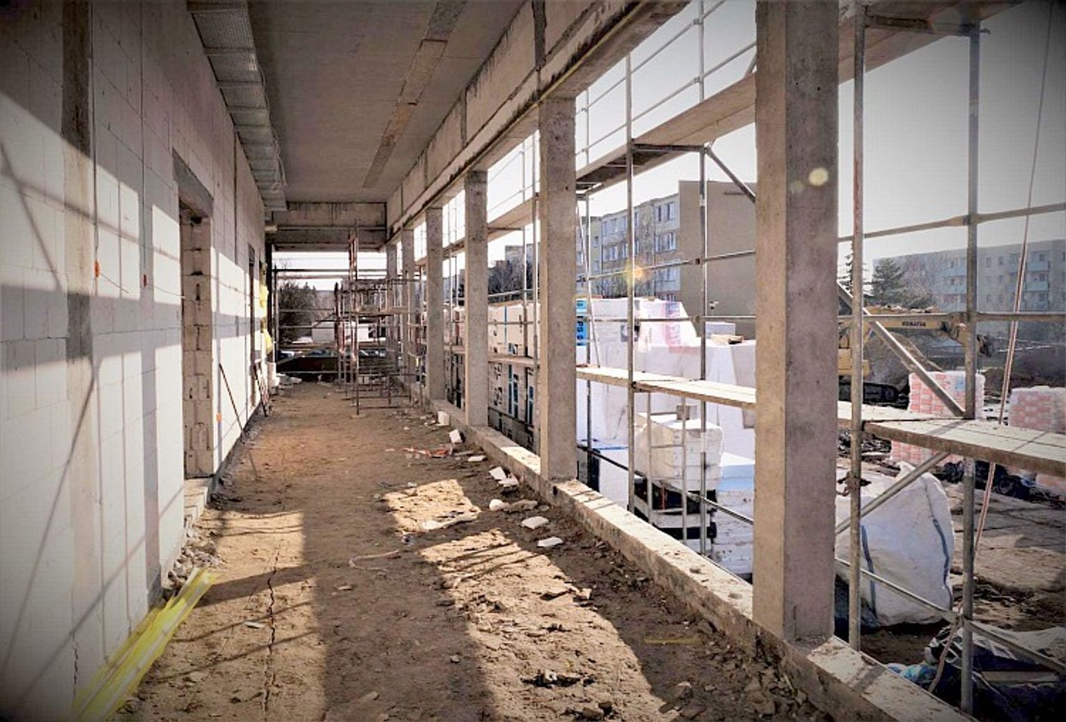 Odnowiony obiekt bardzo zyska na wyglądzie i funkcjonalności. W ramach zadania dobudowano duży pawilon zewnętrzny, który pomieści m.in. nowe komfortowe przebieralnie i na dużej powierzchni będzie miał przeszklone elewacje. Budowlańcy zamontowali już nieckę basenu, płyty akustyczne pod stropem i część niezbędnych instalacji, m.in. wodnej i wentylacyjnej.