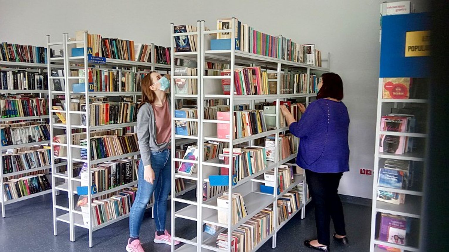 Po ostatnim luzowaniu obostrzeń czytelnicy już mogą samodzielnie przeglądać książki na półkach. W jednym czasie na terenie biblioteki może przebywać dziewięć osób. Są tam oczywiście zabezpieczenia tj. szyby z pleksi.