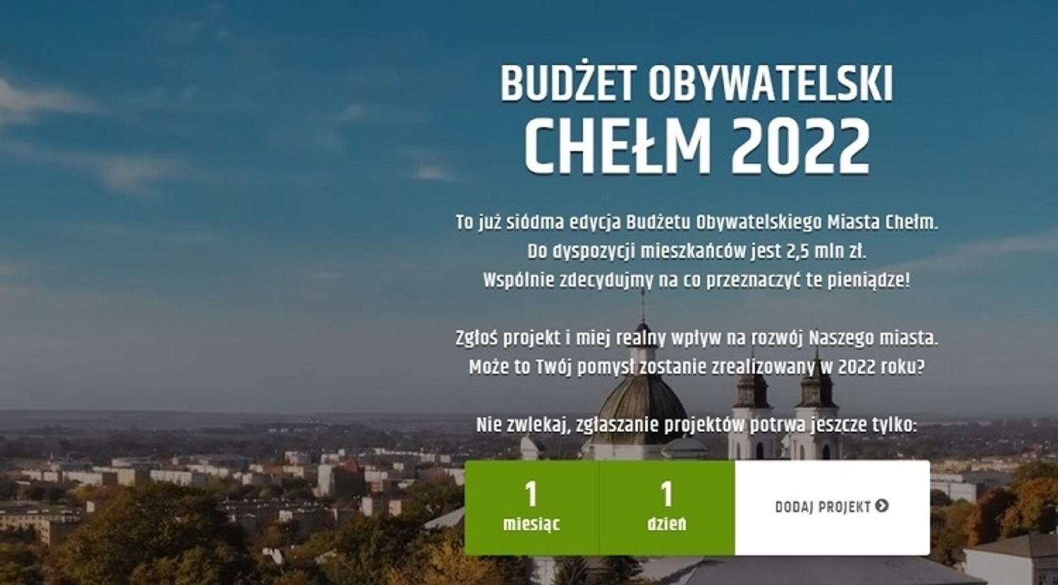 Szczegóły dotyczące zasad funkcjonowania budżetu obywatelskiego dostępne są na stronie internetowej www.chelm.budzet-obywatelski.org.