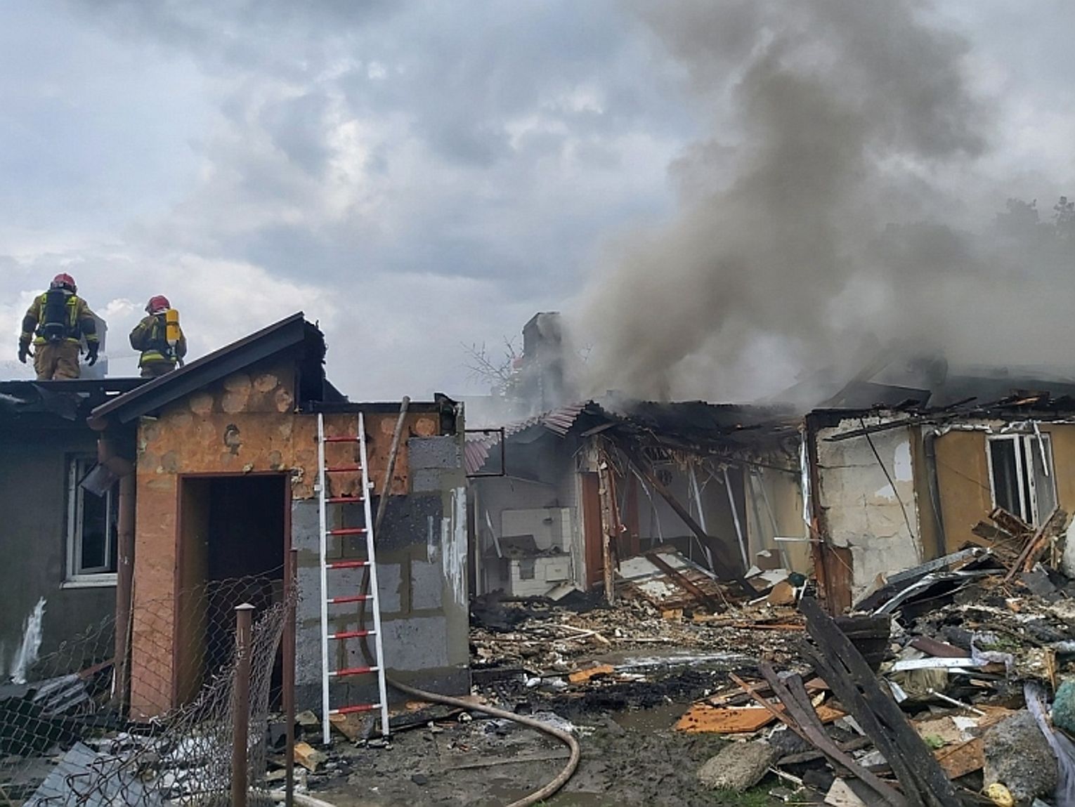 Do groźnego zdarzenia doszło 20 kwietnia przed południem. Gdy strażacy dojechali na miejsce, pożarem były objęte dwa mieszkania i poddasze w wielorodzinnym budynku o konstrukcji drewniano-murowanej. Sporym utrudnieniem okazały się łatwopalne materiały, z jakich były zbudowane domostwa. Z powodu dużego zadymienia ratownicy musieli pracować w aparatach ochrony dróg oddechowych. Wynieśli z pomieszczeń siedem butli gazowych.