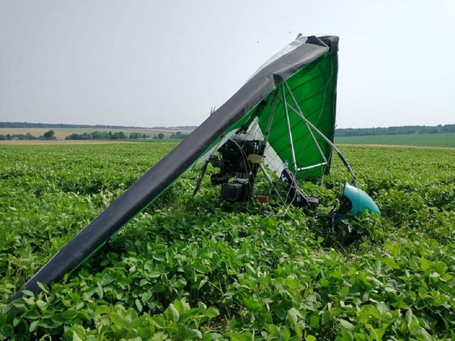 Strażacy z OSP wraz z policjantami przeszukali teren, gdzie widziano spadającą motolotnię. Po około godzinie natrafili na porzuconą maszynę. Motolotnia miała nieznaczne ślady uszkodzeń. Człowieka, który nią przyleciał, nie udało się odnaleźć. Uciekł z miejsca kraksy. W niedalekiej odległości pozostawiono też samochód.