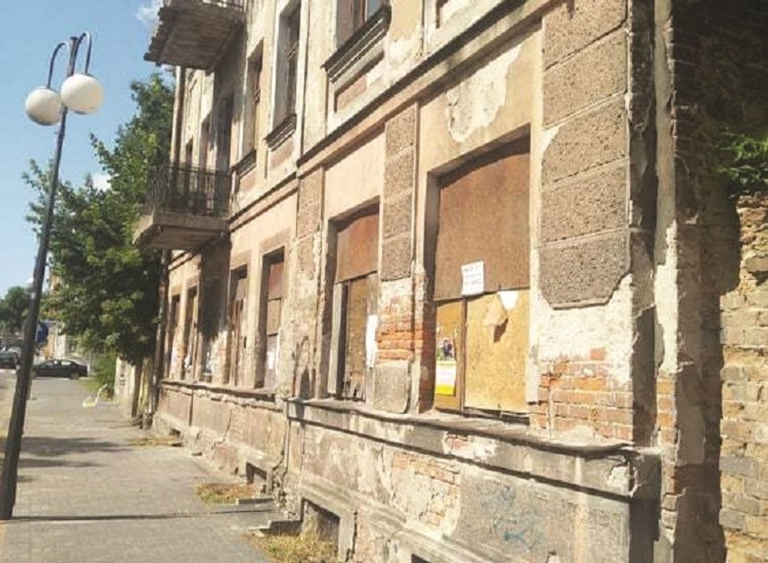Przy skrzyżowaniu ulic Narutowicza i Mickiewicza stoją obok siebie dwa budynki, oba są w fatalnym stanie technicznym. Dla bezpieczeństwa przechodniów większa część chodnika przy nich była wyłączona z użytkowania. Wydzielono go przy pomocy zamontowanych do chodnika metalowych prętów, taśmy biało-czerwonej oraz tablicy "przejście drugą stroną chodnika".
