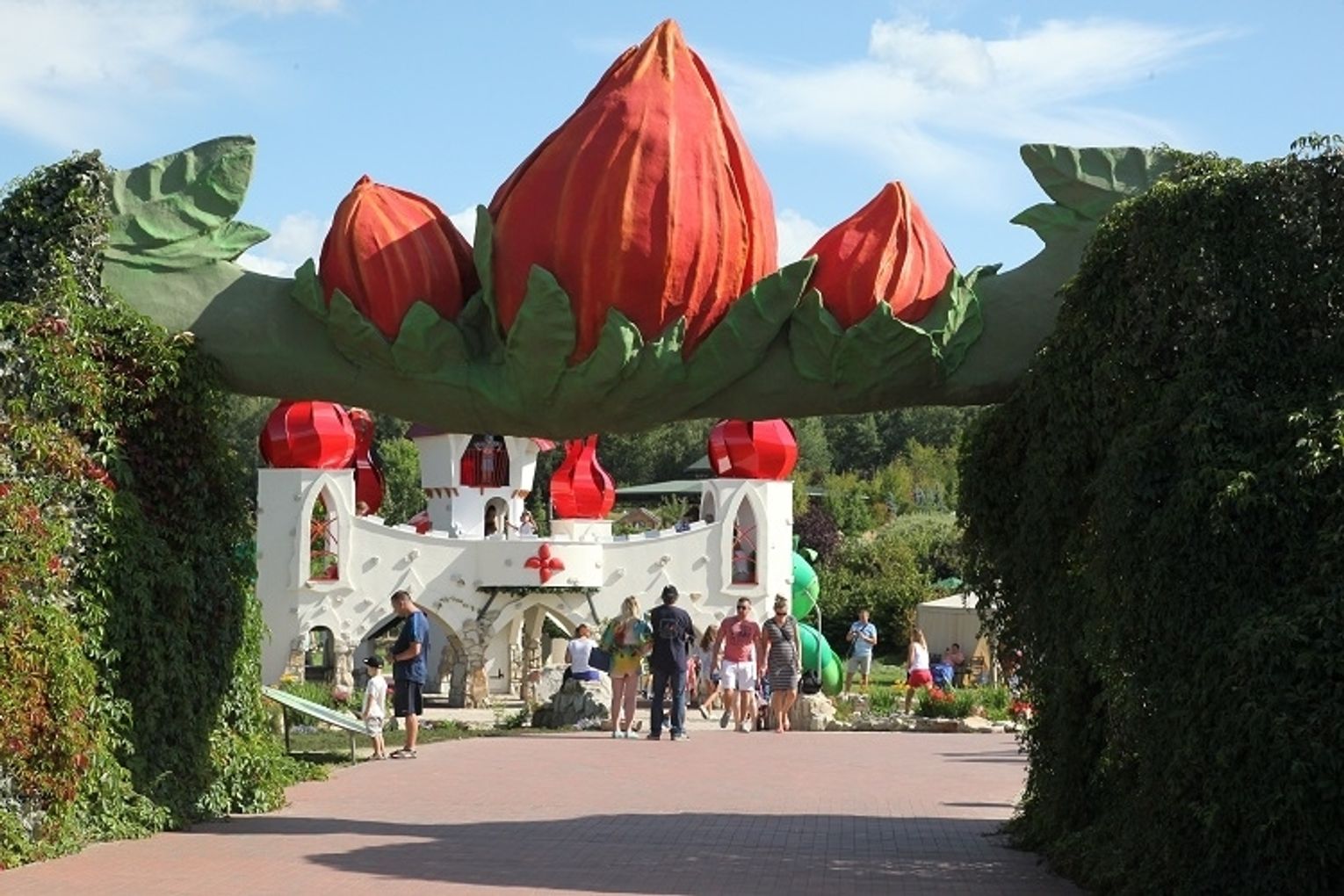Kiedy wejdzie się do środka i stanie na baśniowym dziedzińcu, szerokimi alejkami przyjaznymi dla osób z niepełnosprawnościami, będzie można dotrzeć do wielkiej ilości atrakcji. Są nimi strumyki, wodospady, mostki, punkty widokowe, plaża.