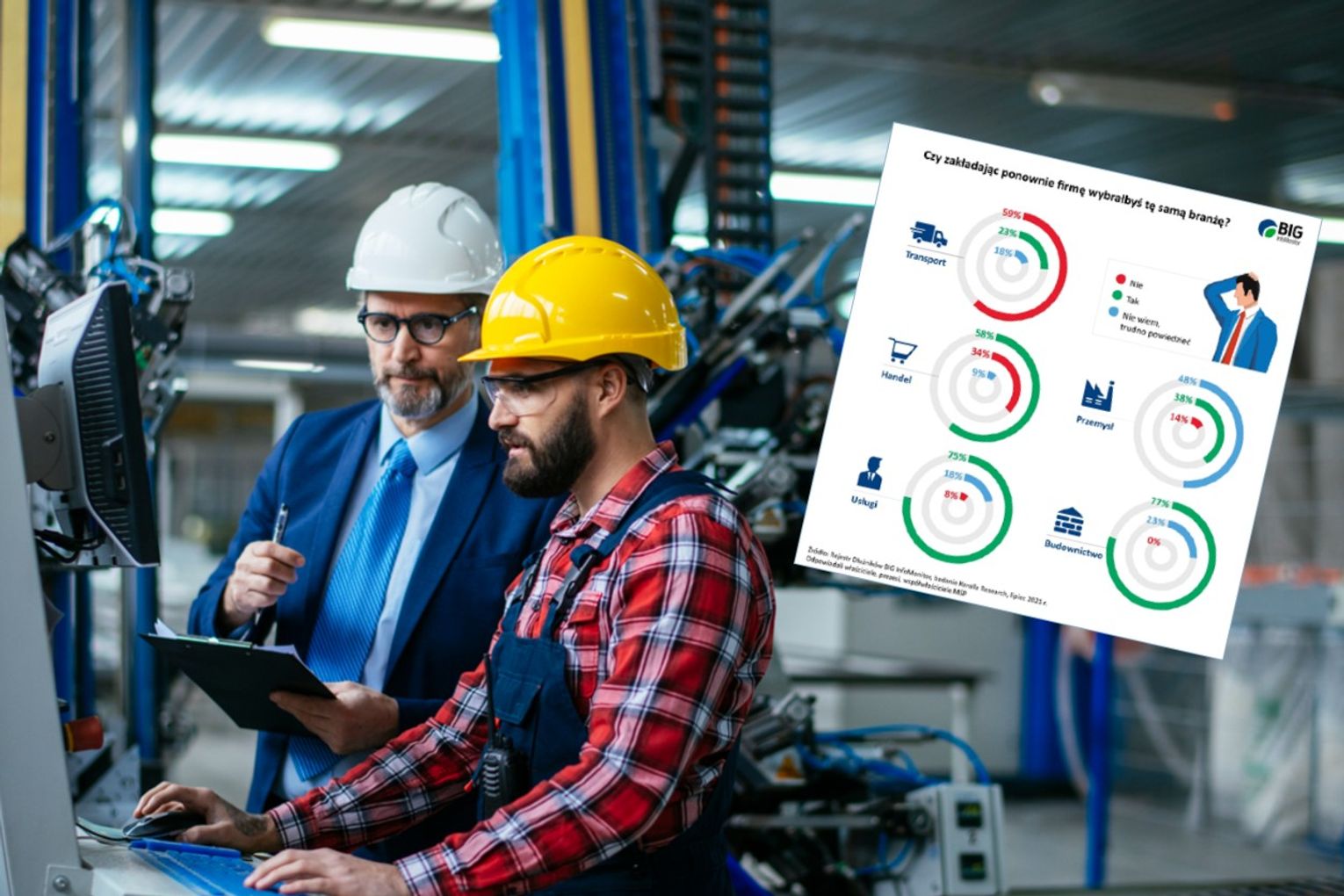 Firma Keralla Research, na zlecenie BIG InfoMonitor, zapytała właścicieli i prezesów mikro, małych i średnich przedsiębiorstw, czy zakładając ponownie firmę, wybraliby kolejny raz tę samą branżę. Zaznaczyć można było jedną z trzech odpowiedzi: „tak”, „nie” lub „trudno powiedzieć”. Okazuje się, że najbardziej zadowoleni ze swoich biznesów są przedstawiciele branży budowlanej, spośród których żaden respondent nie zaznaczył odpowiedzi przeczącej. Z kolei 77 proc. badanych zadeklarowało, że podjęłoby taką samą decyzję, jak kiedyś.