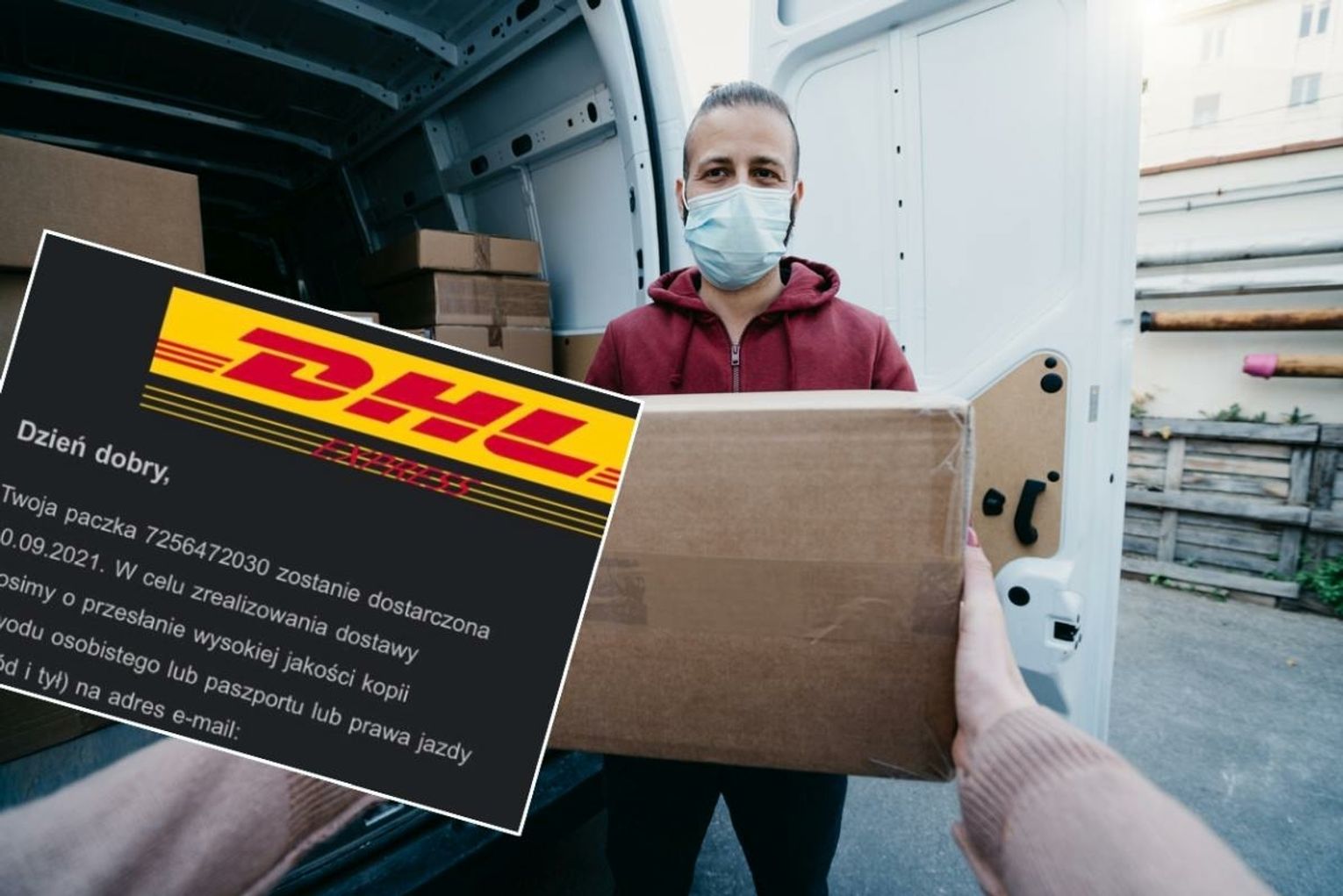 „Przed kilkoma chwilami ruszyła nowa kampania wyłudzająca skany dokumentów Polaków (paszporty, dowody osobiste, prawa jazdy).” – alarmuje branżowy serwis niebezpiecznik.pl. Tym razem oszuści podszywają się pod znaną firmę kurierską DHL. Osoby korzystające z ich usług otrzymują wiadomości, w których proszone są o tym, że „twoja” paczka zostanie dostarczona, ale wpierw trzeba przesłać dobrej jakości kopie jednego z dokumentów. W wiadomości jest wręcz podane jakiego: dowodu osobistego, paszportu, prawa jazdy.