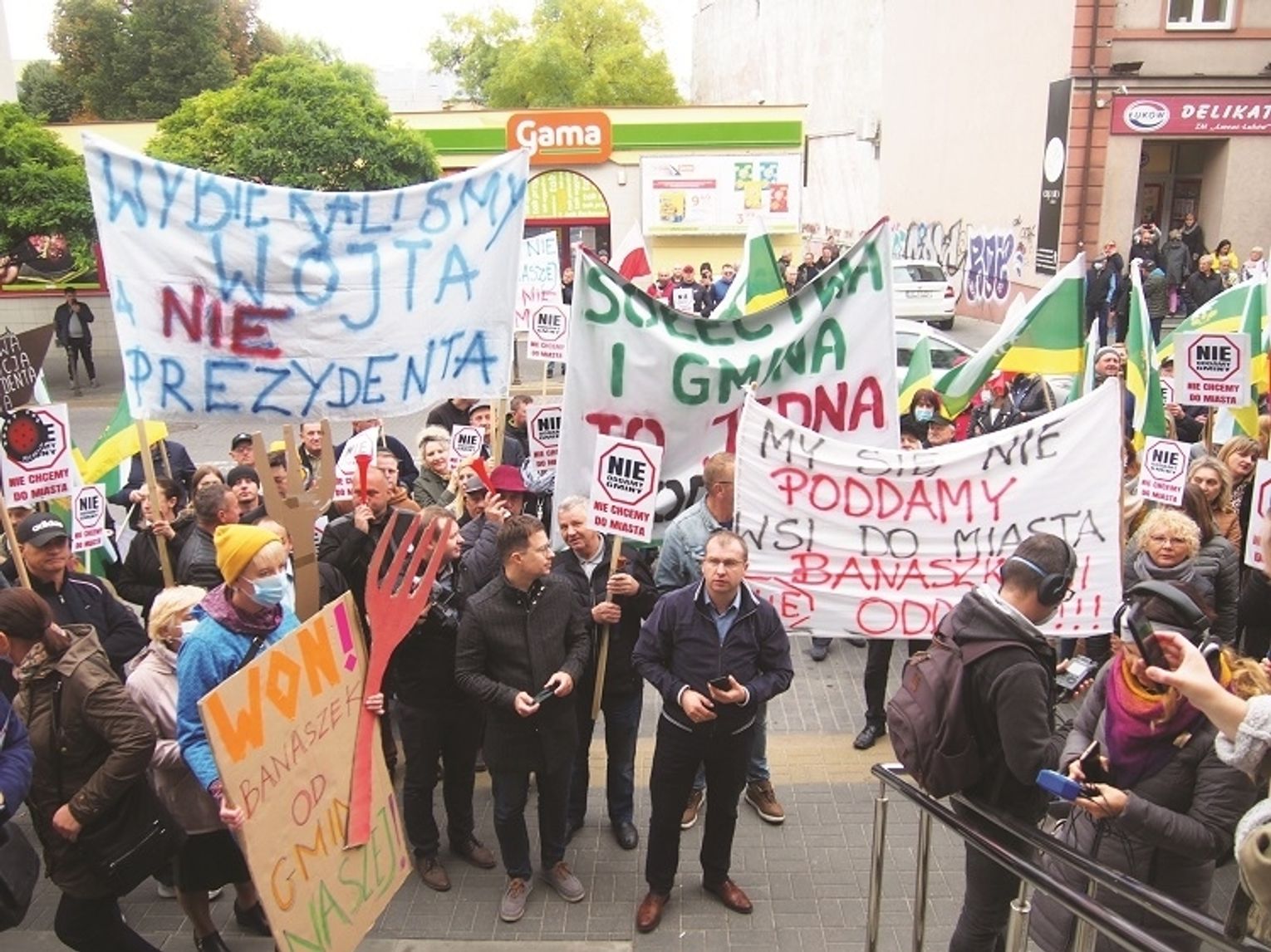 - Mamy fantastycznego wójta, który dba o nasza gminę i jest z mieszkańcami. Do niego nie trzeba tygodniami umawiać się na spotkanie. W mieście będziemy pionkami w całym tłumie, ziarenkami piasku w piaskownicy, a w gminie jesteśmy jednostkami i możemy mieć cokolwiek dla siebie. Co będzie z rozpoczętymi inwestycjami? Szkoły pójdą do likwidacji, dzieci będą musiały dojeżdżać do miasta. My się z tym nie godzimy - powiedziała nam Katarzyna Lewandowska, jedna z liderek protestu na deptaku.