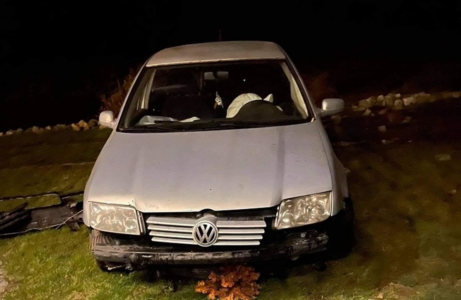 Przed dwoma tygodniami (9 października) na podwórko pana Sebastiana wjechał volkswagen, który wcześniej wypadł z drogi, przejechał przez działkę, trafił w nasyp zbudowany z kamieni, odbił się i zatrzymał tuż przy domu. Kamienie z nasypu poleciały daleko i zniszczyły elewację domu. Była noc, ok. godz. 22.30.