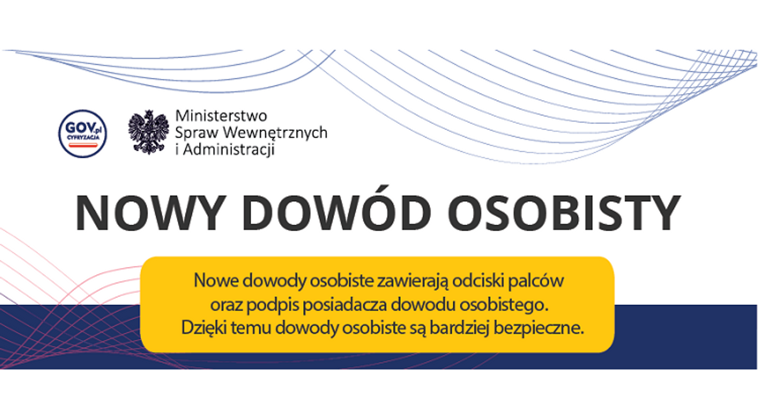 Nowe dowody osobiste zawierać będą odciski palców oraz podpis posiadacza dokumentu. Dzięki temu ma być bezpieczniej. Rozwiązania dotyczące nowych dowodów osobistych wynikają z dostosowania prawa polskiego do wymogów prawa unijnego. Jeśli jednak nasz dokument tożsamości jest wciąż ważny, nie ma potrzeby go teraz wymieniać. Nowe dowody będą wydawane na 10 lat dla osób powyżej 12. roku życia, ponieważ one będą mogły składać odciski palców. Dla osób do 12. roku życia dowód będzie wydawany na 5 lat i bez pobierania odcisków palców.