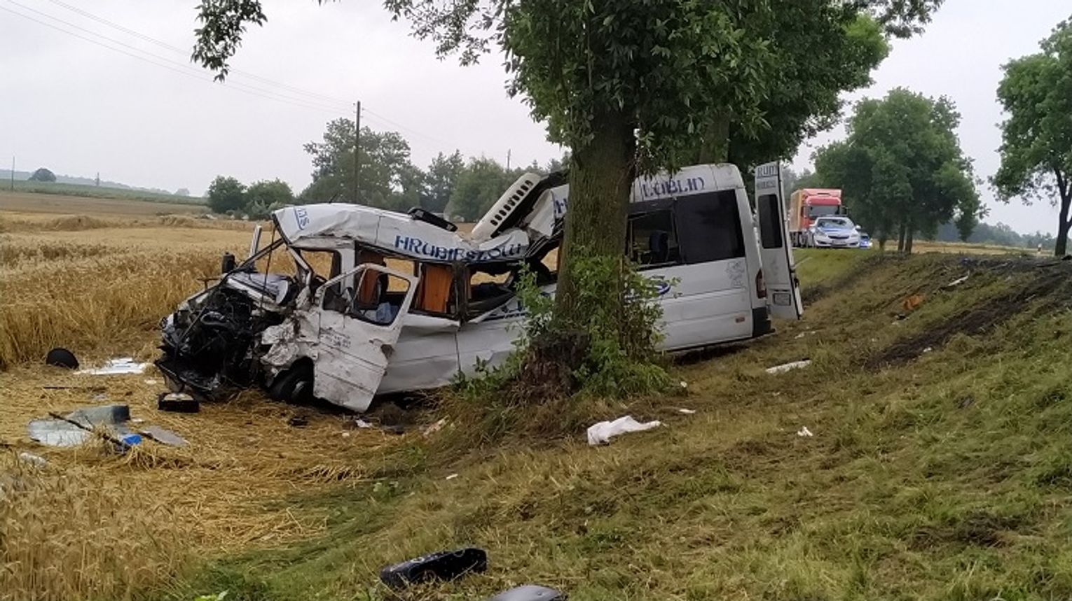 Do zdarzenia tego doszło 2 sierpnia ub. r. około godz. 7.30. Siła uderzenia była ogromna. Z osobówki wyrwało silnik, a bus uderzył dachem w przydrożne drzewo. Strażacy musieli użyć sprzętu hydraulicznego i pneumatycznego, aby wydostać trzy osoby uwięzione w zniszczonych pojazdach. Ranni zostali przewiezieni do szpitali w Chełmie, Lublinie, Łęcznej i Krasnymstawie.