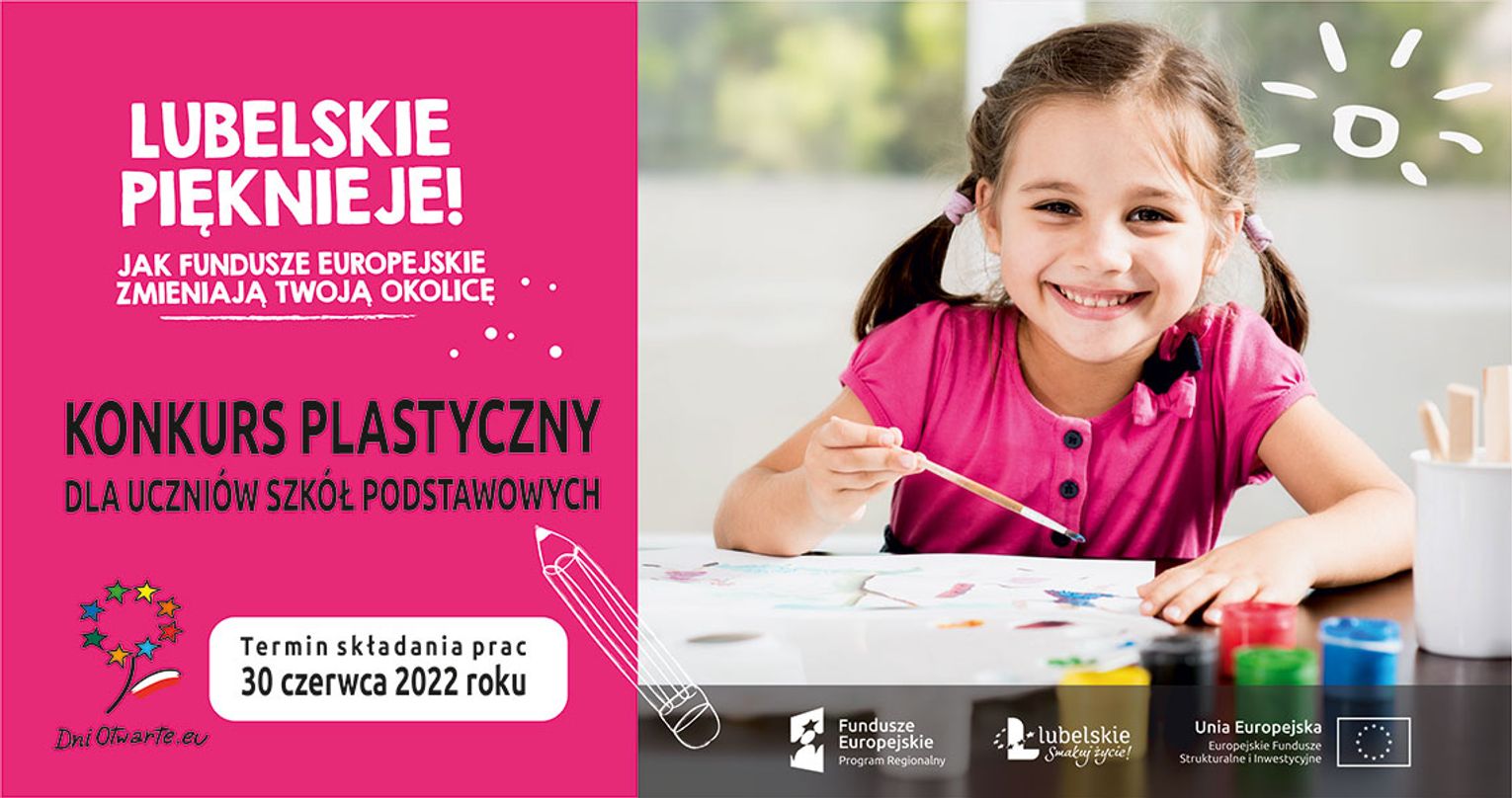 Na konkursowe prace czekamy do 30 czerwca 2022 r. Technika wykonania prac jest dowolna. O wszystkim decyduje wyobraźnia autora. – Wystarczy, że namalujesz, narysujesz, czy wykleisz w formacie A4 lub A3 i pokażesz nam jak w Twoich oczach, dzięki pieniądzom z Unii Europejskiej, zmieniła się okolica, w której mieszkasz. – zachęca, Dyrektor Departamentu Zarządzania Regionalnym Programem Operacyjnym w Urzędzie Marszałkowskim Województwa Lubelskiego Anna Brzyska. – Wyślij nam swoją pracę, a dasz sobie szansę na super nagrodę.