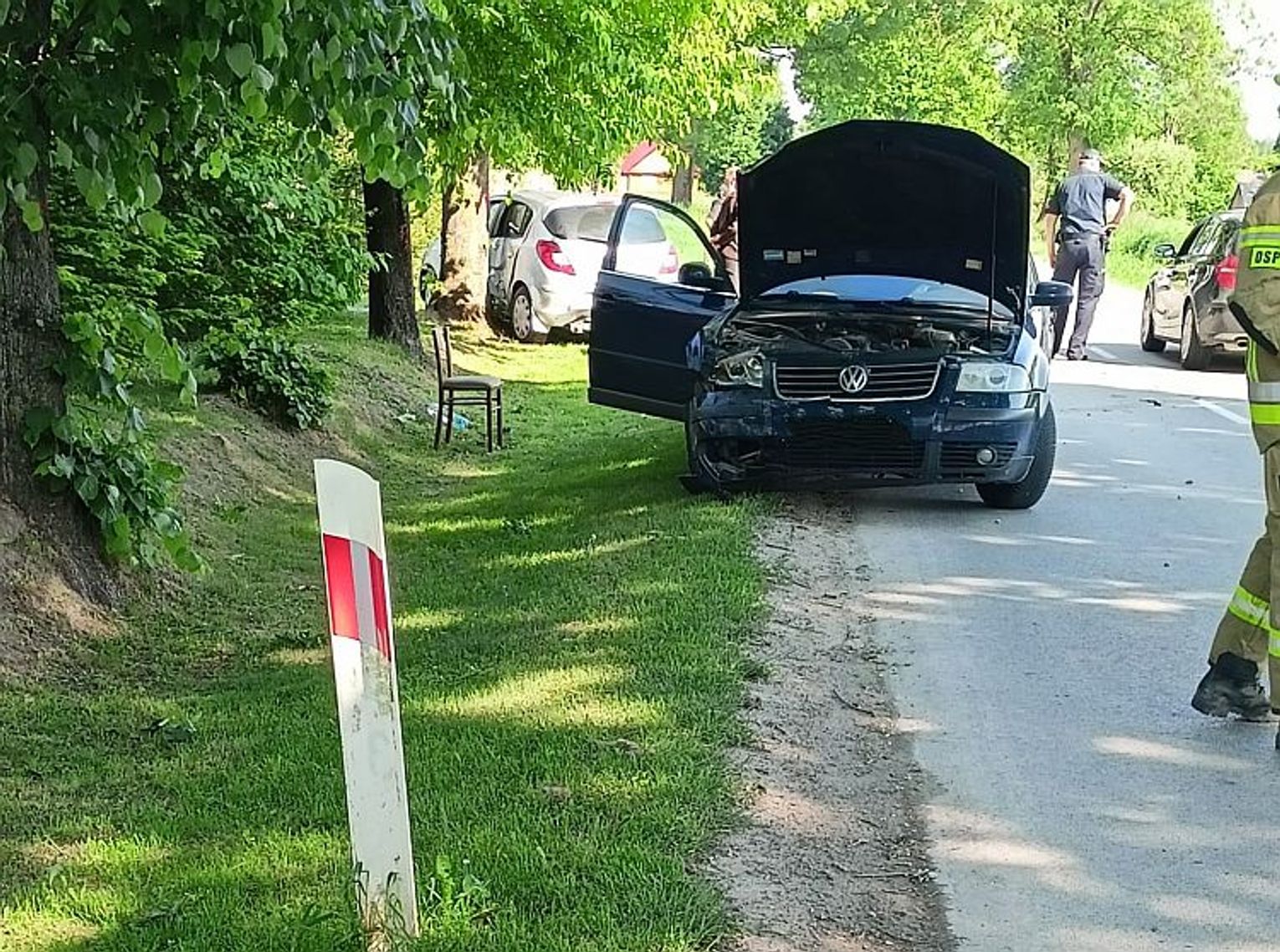 Z wstępnych ustaleń wynika, że kierowca opla corsy skręcał w lewo, a kierujący volkswagenem passatem uderzył w tył jego pojazdu. Pierwsza z osobówek wylądowała w rowie i była bokiem oparta o drzewo. Druga stała na poboczu.