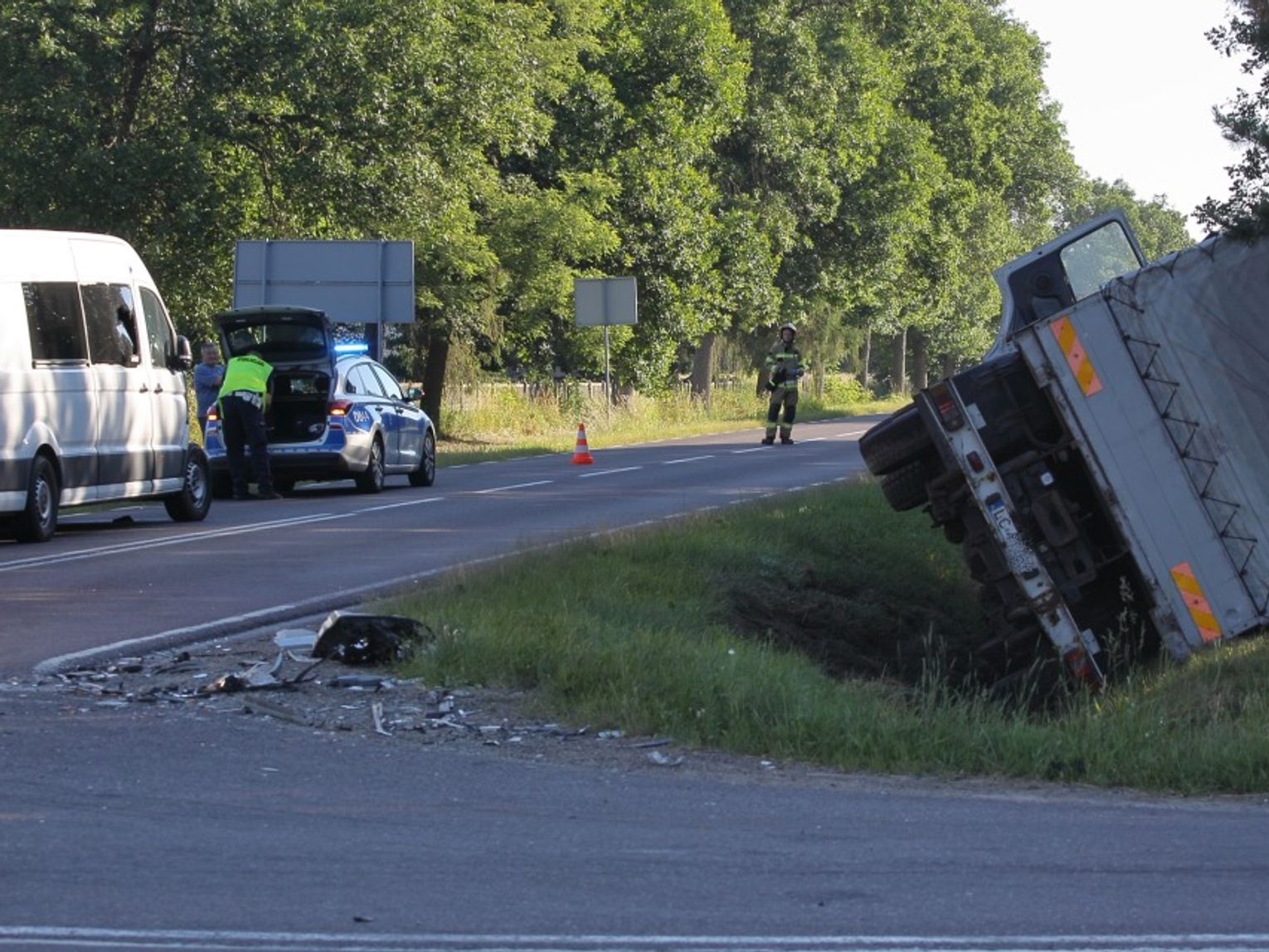 - Ze wstępnych ustaleń wynika, że kierujący volkswagenem crafterem 36-letni obywatel Ukrainy nie ustąpił pierwszeństwa przejazdu 60-latkowi z Chełma. Wybita z toru jazdy ciężarówka marki Volvo zjechała do rowu i przewróciła się na prawy bok - informuje młodszy aspirant Kamil Karbowniczek z zespołu prasowego Komendy Wojewódzkiej Policji w Lublinie.