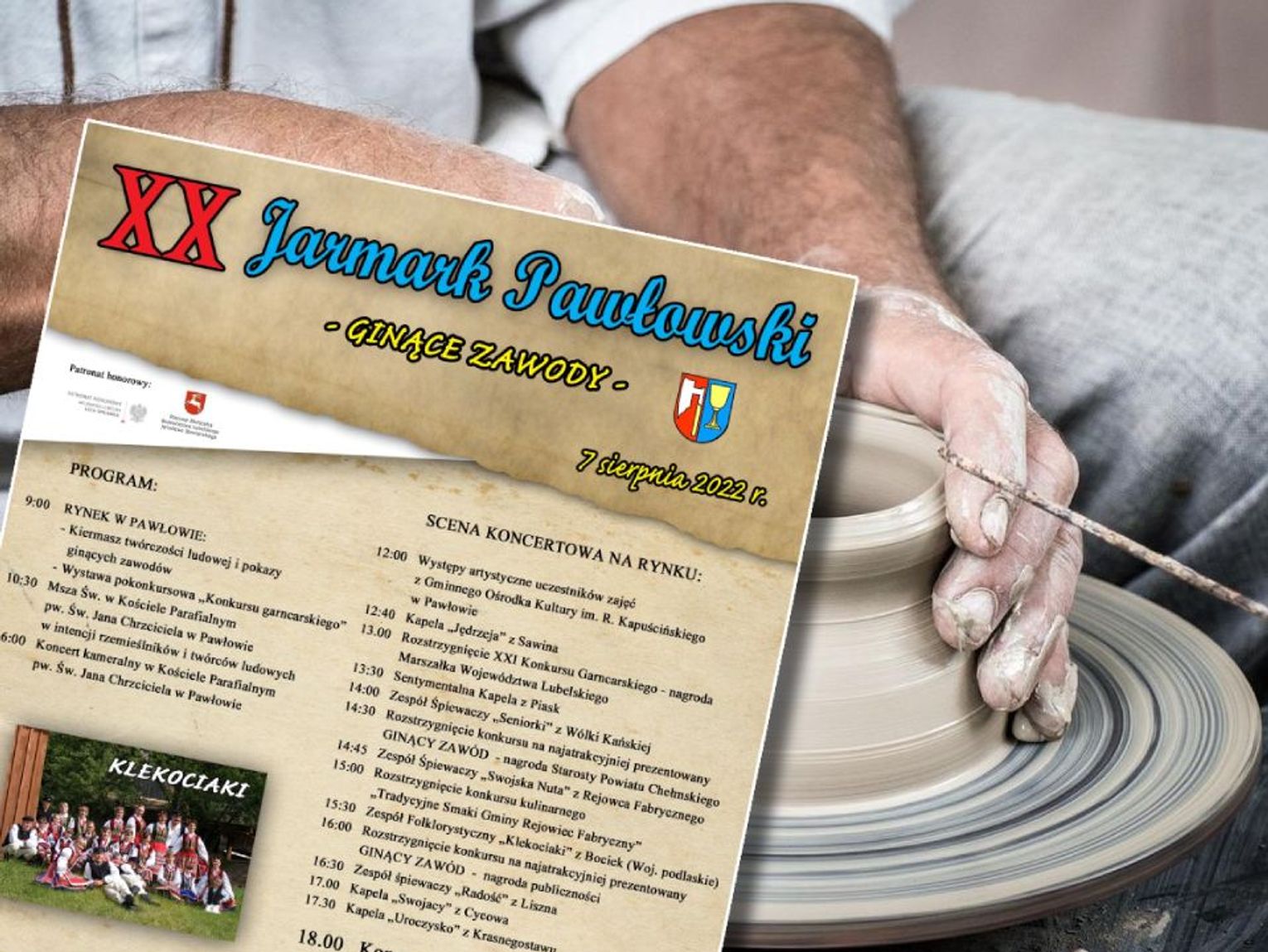 Czego mogą spodziewać się uczestnicy tegorocznego wydarzenia? Otóż będzie można uczestniczyć nie tylko w doskonale znanym, pawłowskim jarmarku, ale również w energetycznych występach zespołów muzycznych. Nie zabraknie twórców muzyki ludowej, ale i tej całkiem współczesnej. Będzie można posłuchać m.in. Kapeli Jędrzeja z Sawina, Sentymentalnej Kapeli z Piask, zespołu Seniorki z Wólki Kańskiej, zespołu Swojska Nuta z Rejowca Fabrycznego, Klekociaków z Bociek, zespołu Radość z Liszna, kapeli Swojacy z Cycowa czy Uroczyska z Krasnegostawu. Na podsumowanie części muzycznej zaplanowano występ zespołu Piersi. Odbędzie się również rozstrzygnięcie konkursu na najatrakcyjniej zaplanowany ginący zawód oraz podsumowany zostanie 21. konkurs garncarski.