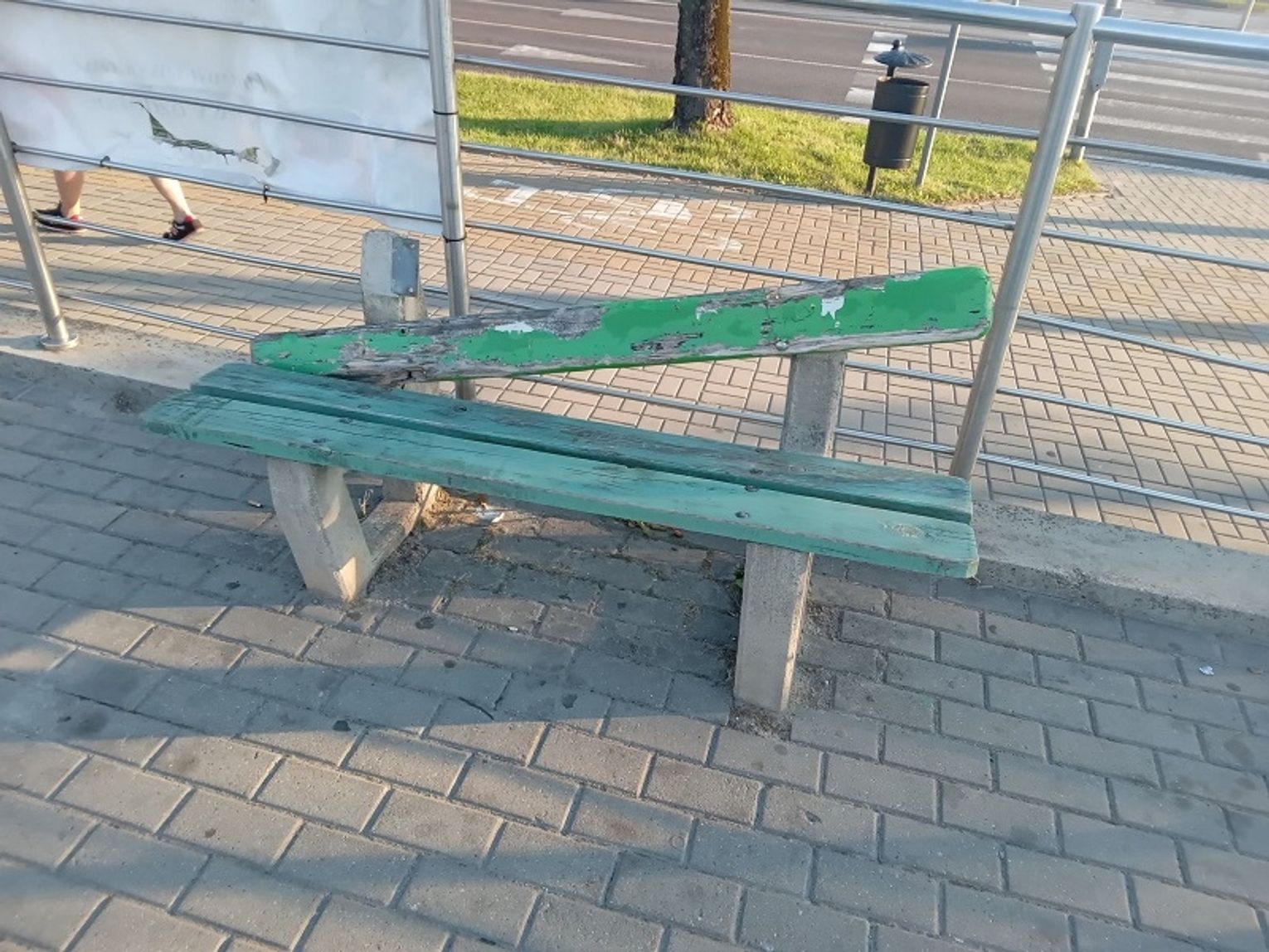 Ławki są poniszczone, porysowane i mają zdezelowane siedziska. Sprawę zgłosiliśmy do Urzędu Miasta. Jak się tam dowiedzieliśmy się, teren ten dzierżawi Przedsiębiorstwo Usług Mieszkaniowych.