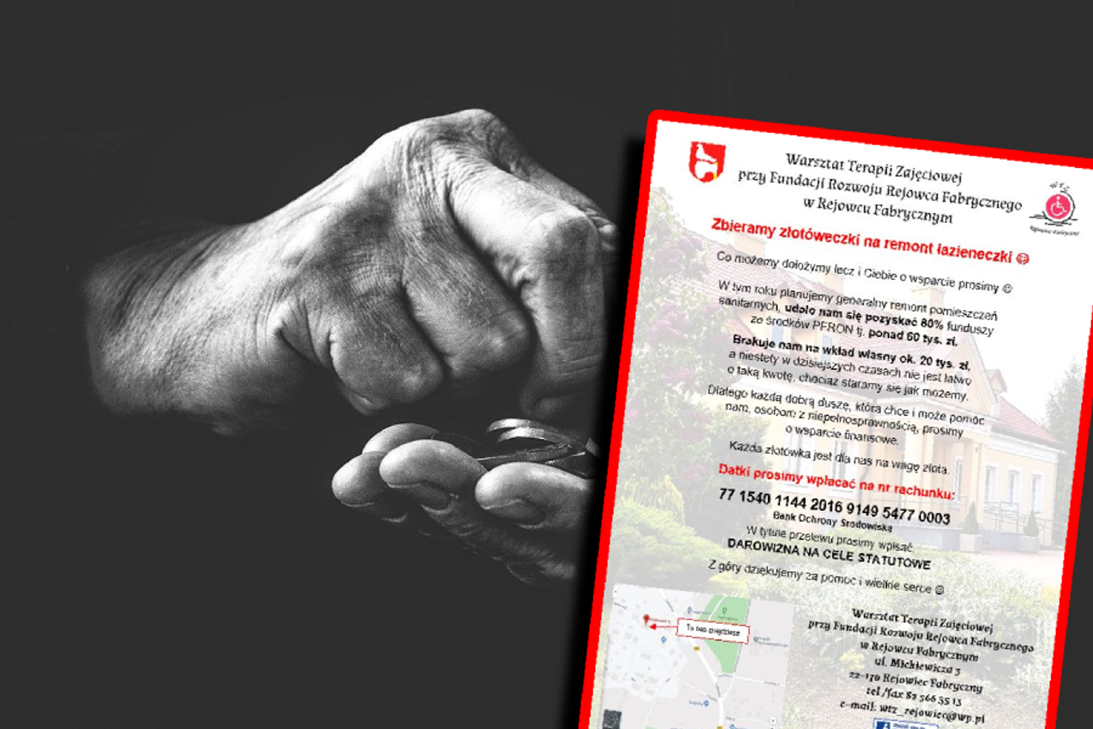 Z PFRON-u fundacja pozyskała ok. 63 tys. złotych. By remont mógł dojść do skutku, trzeba dołożyć jeszcze 20 tys. złotych. Pracownicy fundacji i osoby skupione wokół warsztatu proszą o dobrowolne wpłaty na następujący nr konta: 77 1540 1144 2016 9149 5477 0003 z dopiskiem „darowizna na cele statutowe”. Wierzą, że planowane prace odmienią codzienne życie ich podopiecznych.