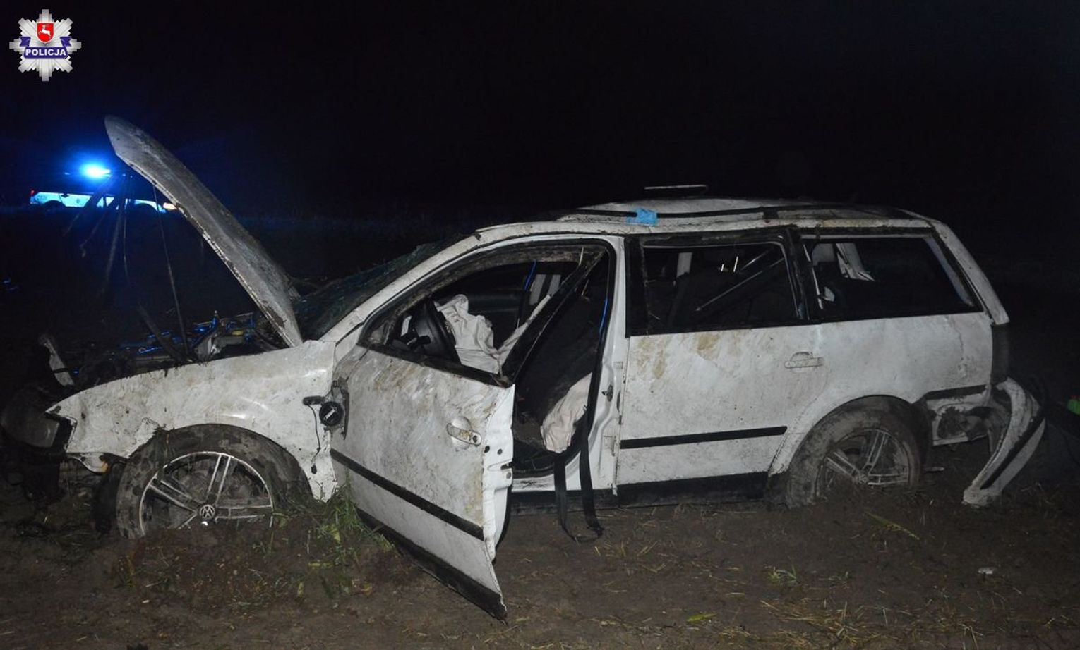 Do szpitala z obrażeniami ciała trafił 35-letni pasażer volkswagena, który wypadł z pojazdu. Niestety, jego życia nie udało się uratować.