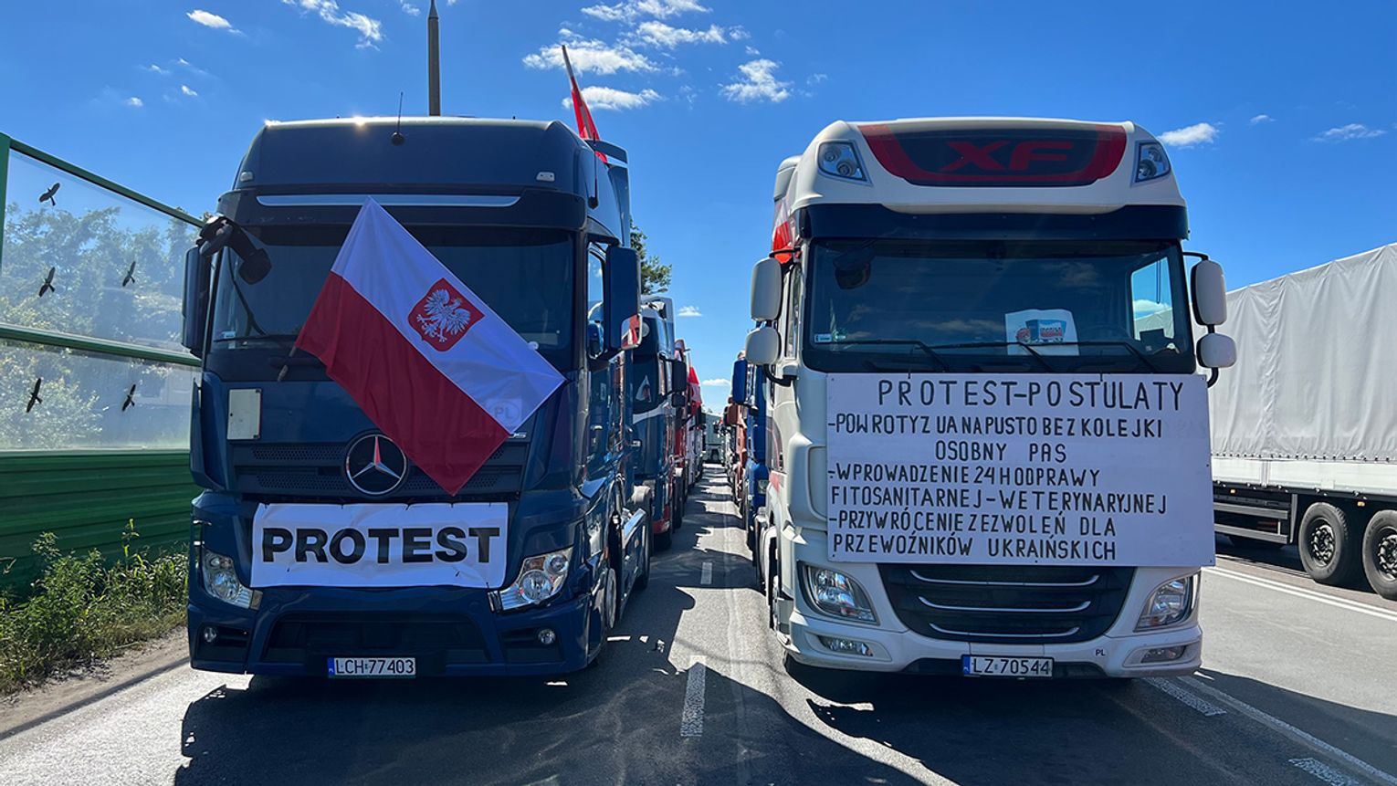 Przewoźnicy zbuntowali się, bo mieli dosyć stania w absurdalnie długich kolejkach. Żądają osobnego pasa dla aut wracających na pusto z Ukrainy, fitosanitarnych i weterynaryjnych odpraw w 24 godziny oraz przywrócenia zezwoleń dla przewoźników ukraińskich. Miałoby to na celu - według nich – skrócenie czasu oczekiwania na granicy.