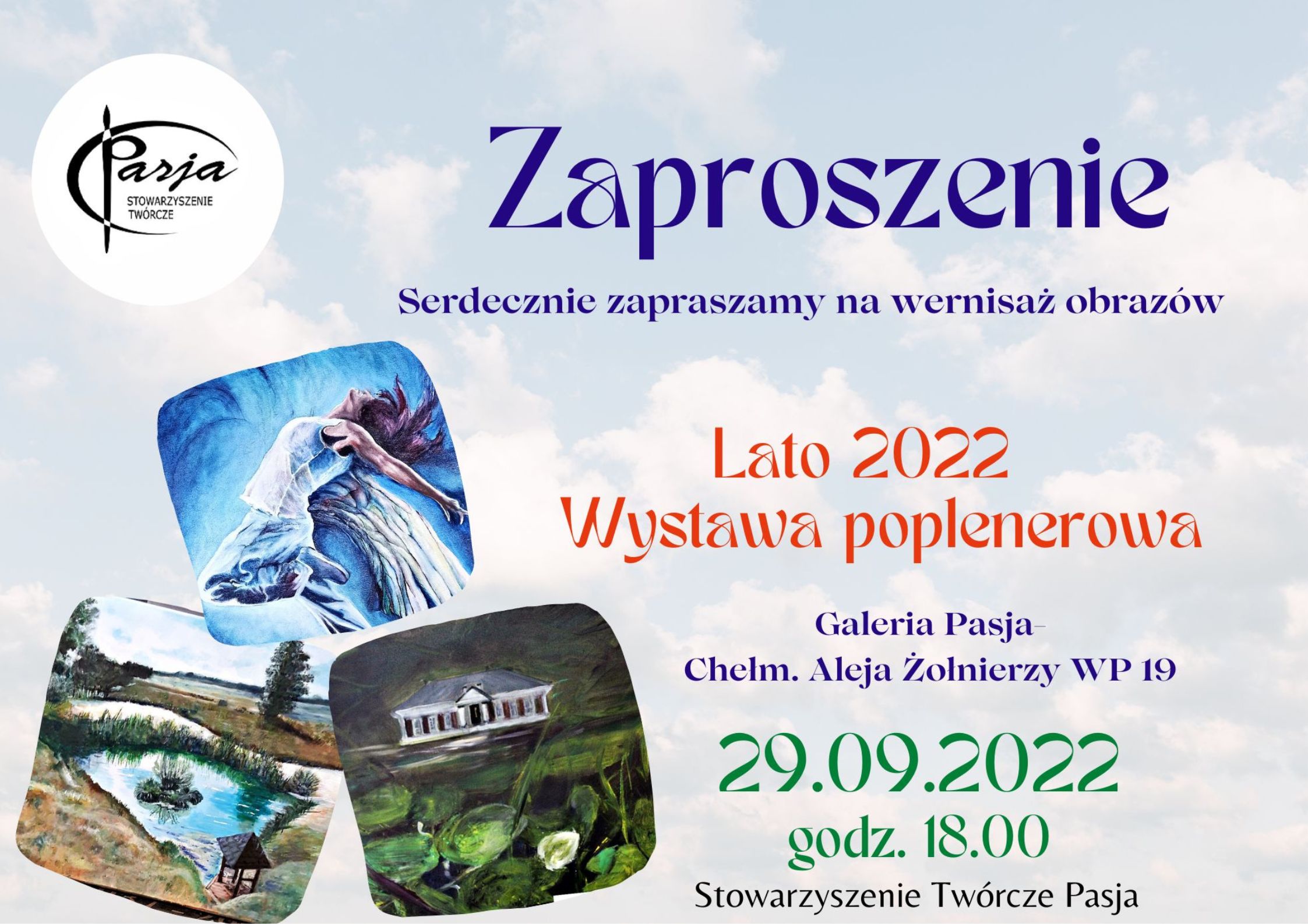 29 września (czwartek) o godz. 18 w jednym z pomieszczeń Miejskiego Przedsiębiorstwa Energetyki Cieplnej w Chełmie odbędzie się wystawa plenerowa prac malarskich Stowarzyszenia Twórczego "Pasja".