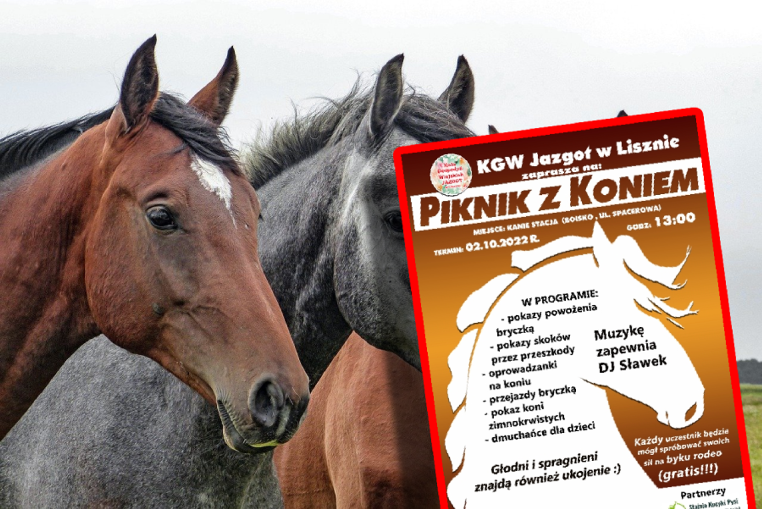 W programie koniarskiego festynu pojawią się bowiem same atrakcje. Będzie pokaz powożenia bryczką oraz skoki przez przeszkody. Będzie można udać się w klimatyczną przejażdżkę bryczką po najbliższym terenie oraz spróbować sił w jeździe wierzchem.