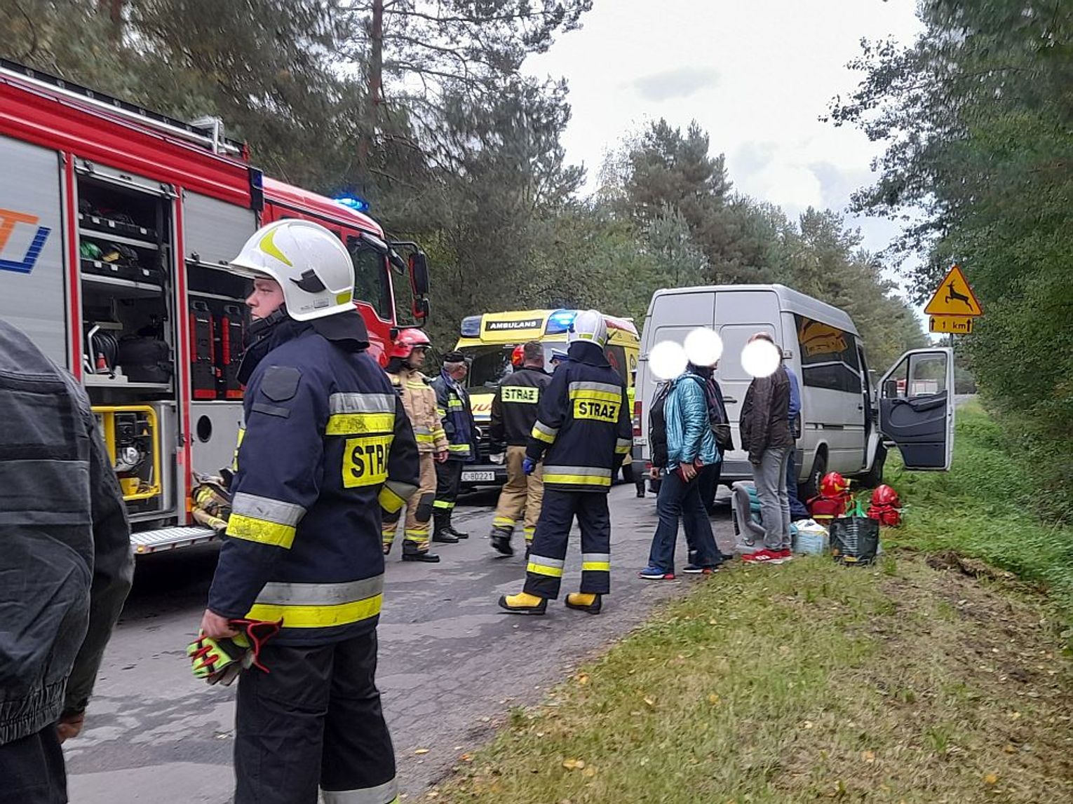 Busem podróżowały dwie osoby dorosłe i 7 ukraińskich dzieci. Kierowca uderzył w tył jadącej przed nim osobówki. Następnie samochody zjechały na drogę powiatową, gdzie służby ratunkowe udzielały pomocy.