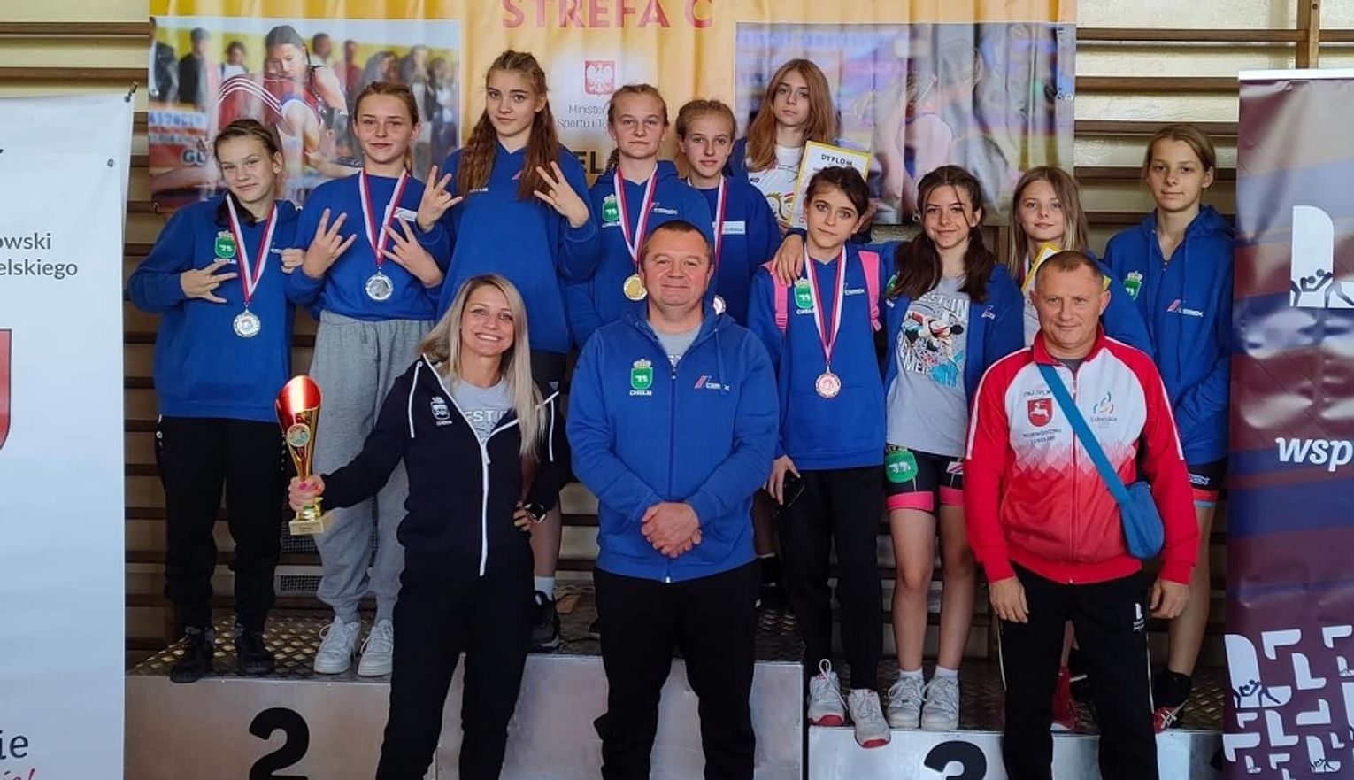 Jeszcze lepszy wynik zanotowały najmłodsze zapaśniczki klubu. Z kompletem zwycięstw i złotym medalem z Kielc wróciła Patrycja Cieloch, uczennica Szkoły Podstawowej w Strupinie Dużym. Tytuły wicemistrzyń i srebrne krążki wywalczyły: Roksana Sawicka (Szkoła Podstawowa w Rudzie-Hucie) i Maja Radelczuk (Szkoła Podstawowa nr 4 w Chełmie). Do wspólnego dorobku brąz dołożyły jeszcze: Sylwia Kępińska (Niepubliczna Szkoła Podstawowa Arka), Nicola Przyczyna i Gabriela Szeliga (obie ze Szkoły Podstawowej nr 6 w Chełmie). Na siódmym miejscu sklasyfikowana została Oliwia Jankowska (SP nr 6 w Chełmie), a na ósmym Maja Piotrowska (SP nr 5 w Chełmie). Trenerami medalistek są: Dariusz Kucharski, Alicja Piersa i Andrzej Gruszkowski.