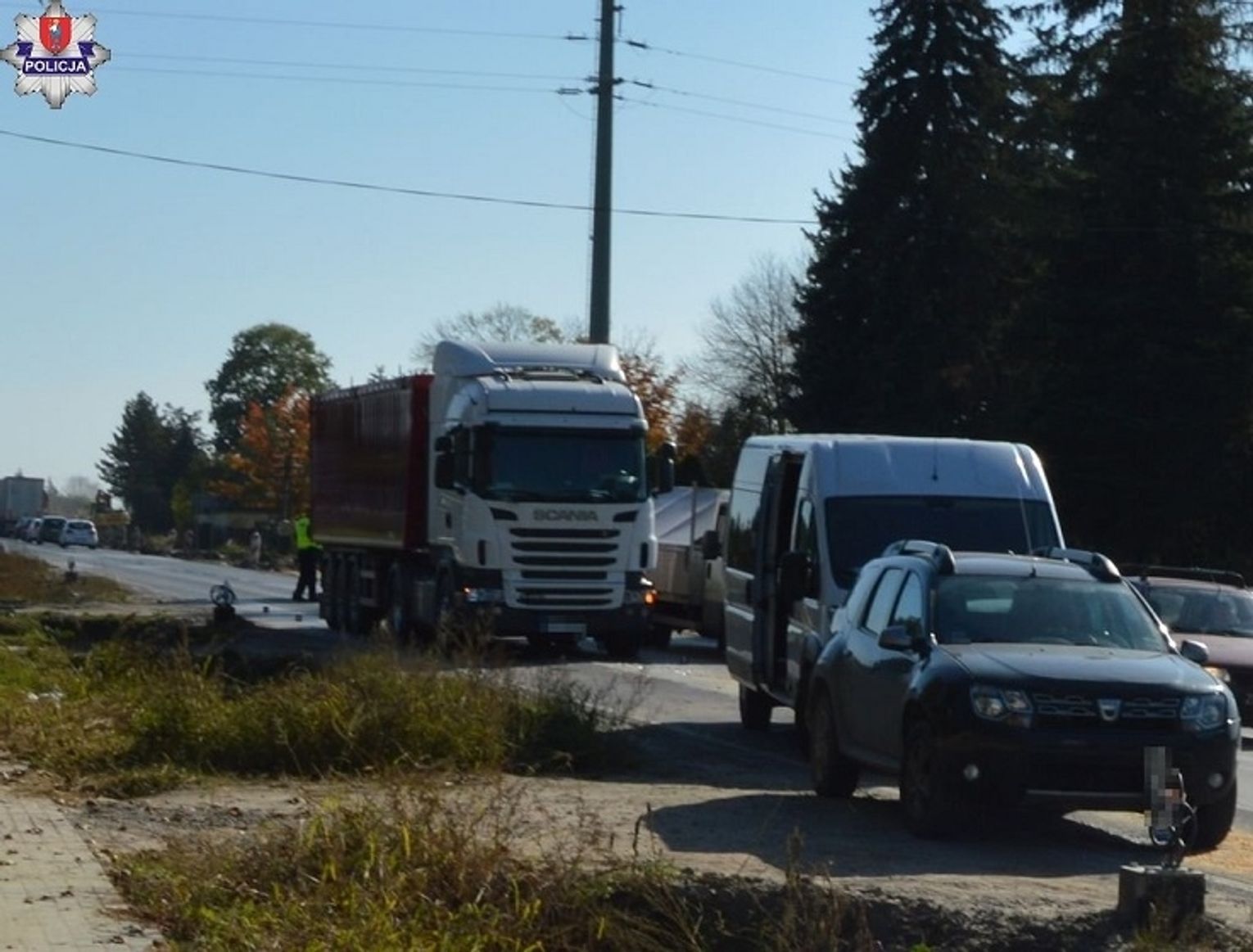 Od strony Tomaszowa Lubelskiego drogą krajową numer 17 w kierunku Zamościa jechał ciąg pojazdów. Jak podaje zamojska komenda policji, na ulicy Lwowskiej kierujący pojazdem marki Toyota zatrzymał się. Za nim zatrzymali się kierujący osobową dacią oraz kierujący fiatem ducato. Za fiatem poruszał się kierujący Scanią z naczepą. Siedzący za kierownicą pojazdu ciężarowego 21-latek z gminy Susiec nie zachował bezpiecznej odległości za poprzedzającym go pojazdem i uderzył w tył fiata. Siła uderzenia przesunęła fiata, który uderzył w stojącą przed nim dacię, a dacia uderzyła w toyotę.
