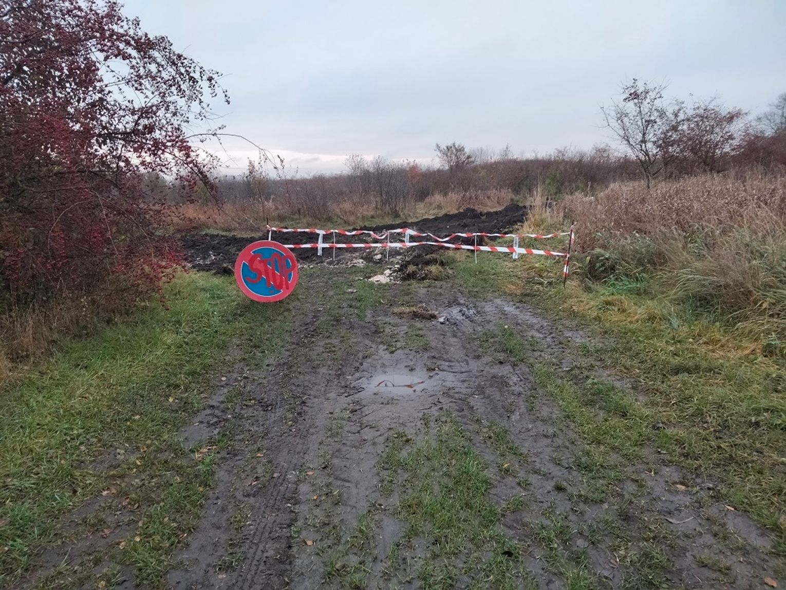 By dojechać do wskazanego przez naszą Czytelniczkę miejsca, należy poruszać się cały czas ulicą Towarową w kierunku granicy miasta. Ulica wiedzie obok Miejskiego Przedsiębiorstwa Robót Drogowych i Miejskiego Przedsiębiorstwa Energetyki Cieplnej. Nasza czytelniczka poczuła się zaniepokojona tym, że niegdyś drogą pomiędzy miastem a gminą dało się dojechać do Okszowa. Obecnie, ze względu na „zaporę”, jest to niemożliwe. Za taśmą przejazd został całkowicie zaorany, więc o przejeździe samochodem nie może być mowy.