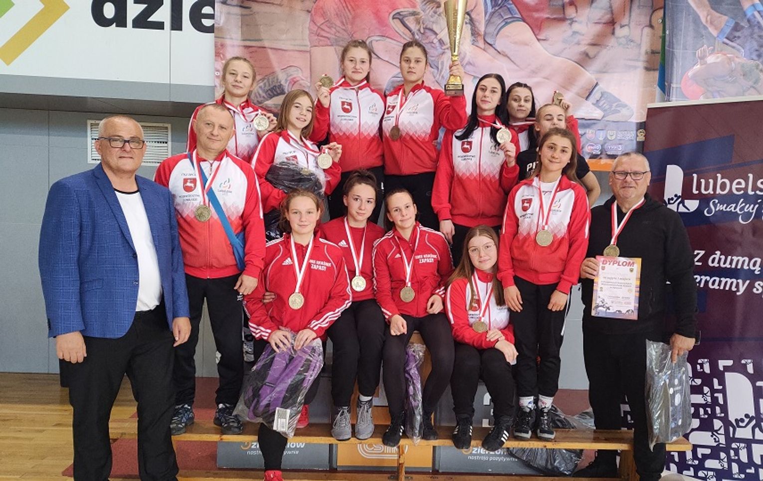 W Dzierżoniowie rozegrały się Drużynowe Wojewódzkie Mistrzostwa Polski Kadetek. Zapaśniczki Cementu Gryfa Chełm, czyli Nikola Silniewicz, Monika Dadas, Wiktoria Kamela i Natalia Małek, wraz zresztą reprezentantek Lubelszczyzny, wywalczyły na tamtejszych matach najwyższy stopień podium. Jest to już ich trzecie takie osiągnięcie z rzędu, tym razem pokonując kolejno rywalki z województw: świętokrzyskiego, dolnośląskiego i zachodniopomorskiego, a w finale ze śląskiego.