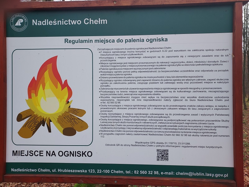 - Teren jest bezpieczny, posiada oświetlenie i monitoring całodobowy. W drewno należy zaopatrzyć się we własnym zakresie. Nie powinno to być drewno zbierane, a tym bardziej cięte z okolic ogniska. Szczegółowy regulamin korzystania z tego miejsca wywieszony jest na tablicy informacyjnej w bezpośrednim sąsiedztwie miejsca na rowery. Usytuowany został tam również przenośny WC - informuje Piotr Kosmala, rzecznik prasowy Nadleśnictwa Chełm.