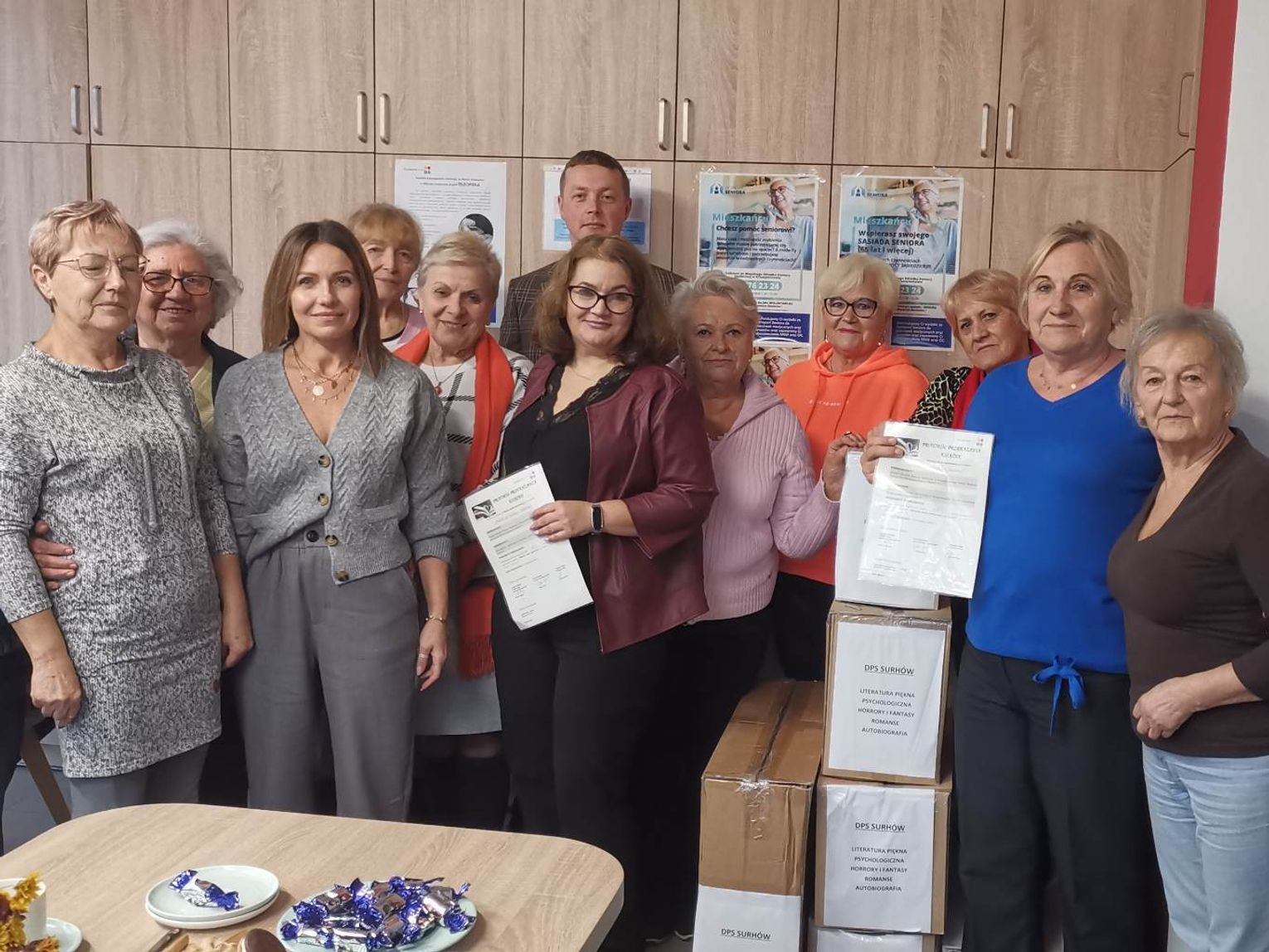 W spotkaniu podsumowującym prócz seniorów z Klubu Aktywnego Seniora uczestniczył zespół projektowy Krasnostawskiego Aktywnego Seniora, działający przy MOPS – Monika Sawa oraz Justyna Pezda oraz kadra zarządzająca placówek domów pomocy społecznej, które również pomagają osobom starszym. Obecna była zatem dyrektor DPS w Surhowie Monika Łukasik, zastępca dyr. DPS w Krasnymstawie Tomasz Duda i kierownik Dziennego Domu Pomocy Społecznej w Krasnymstawie Maria Radczuk. I właśnie do tych trzech placówek trafią zebrane książki. O akcji opowiedziała jej inicjatorka, animatorka Punktu Wsparcia Seniora Justyna Pezda.