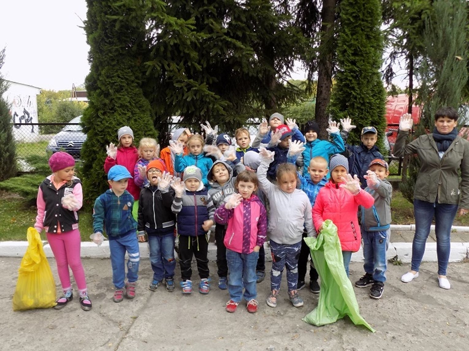 Wszystkie dzieci otrzymały rękawiczki i worki na śmieci. Dzieci bardzo zaangażowały się w tę akcję i dokładnie wykonały swoje zadanie. Wszystkie zapełnione worki włożyły do kosza. Od dziś będą pamiętały, że należy dbać i szanować naszą przyrodę.