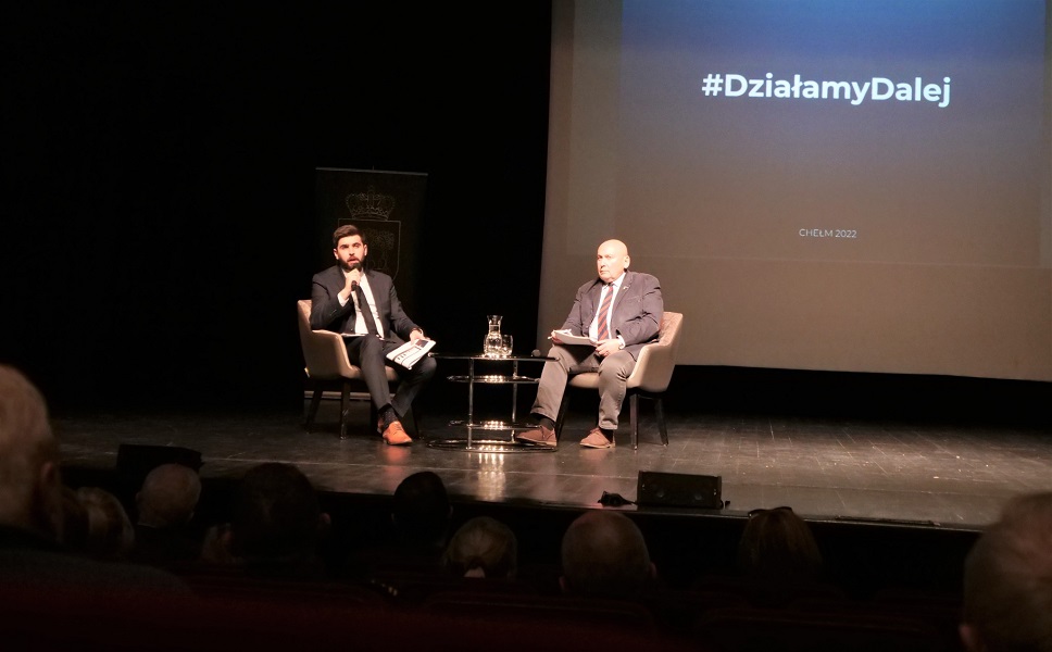 W środę (23 listopada) w Chełmskim Domu Kultury odbyło się spotkanie prezydenta Jakuba Banaszka i przewodniczącego Rady Miasta Chełm Longina Bożeńskiego z mieszkańcami. Na wstępie prezydent podsumował w formie prezentacji 4 lata kadencji. Następnie mieszkańcy mogli zadawać pytania.