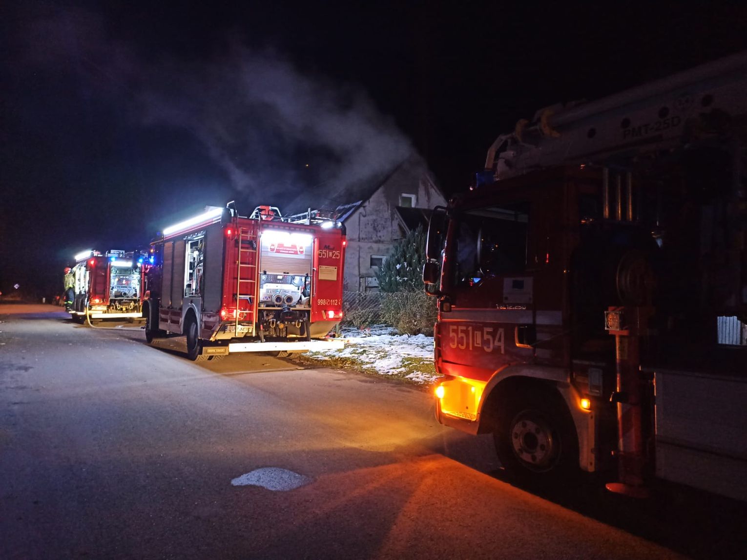 Mieszkańcy wyszli z domu przed przyjazdem straży pożarnej. Poza jednostkami PSP w zdarzeniu brało udział po jednym zastępie z Orchówka oraz Żukowa. Pożar łącznie gasiło 16 ratowników.