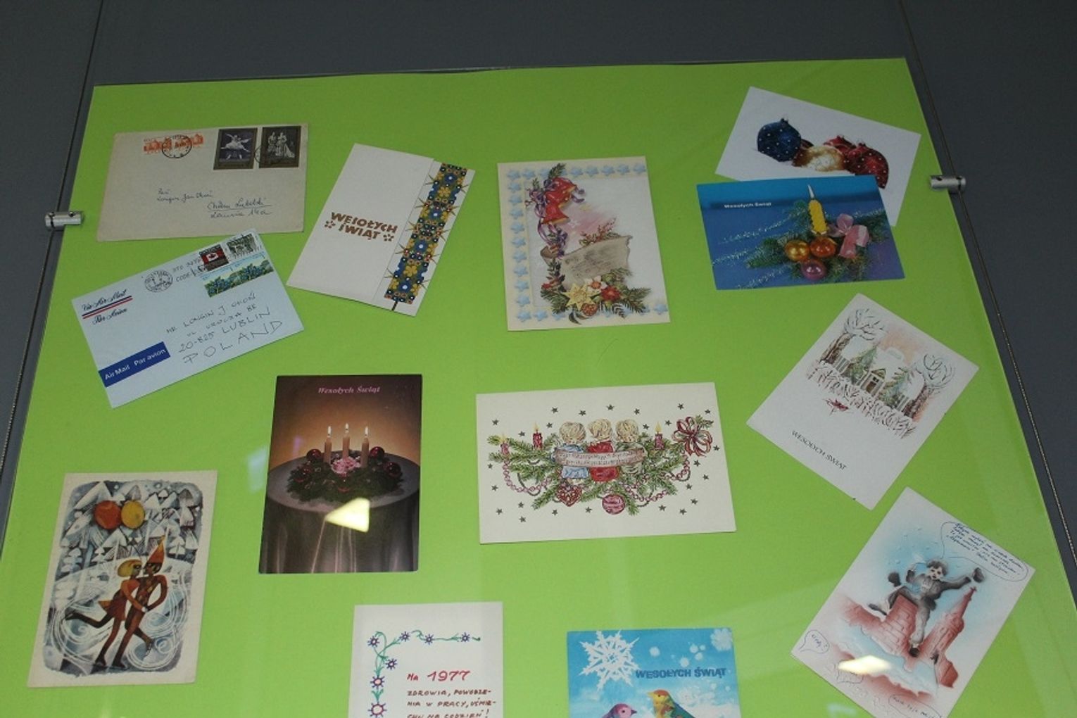 Na wystawie można odnaleźć wiele unikatowych kartek, które liczą ponad 50 lat. Niektóre z nich są samodzielnie robione przez nadawców. Znaleźć też można te przysłane przez znajomych i przyjaciół Okonia, ale i przez stowarzyszenia czy instytucje z całego świata.
