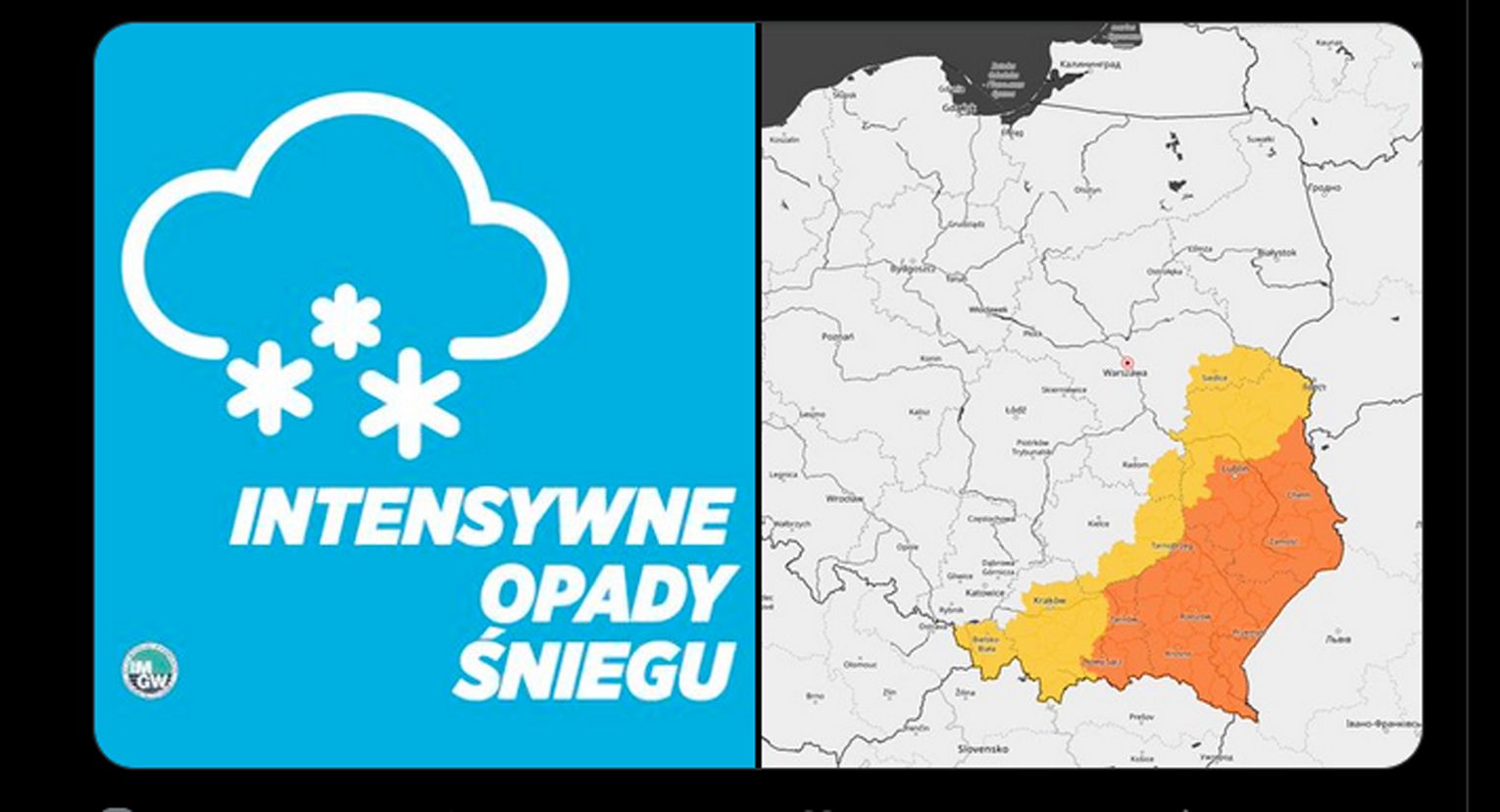 Pomarańczowe alerty Instytutu Meteorologii i Gospodarki Wodnej przed intensywnymi opadami śniegu zostały wydane dla województw:
