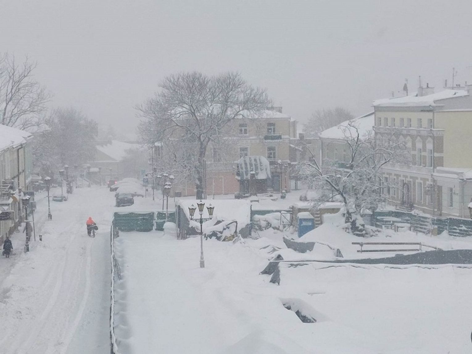 Opady śniegu paraliżują ruch. Wiele osób decyduje się na pozostanie w domach, żeby nie utknąć gdzieś na mieście. Puste są ulice, pusty plac Łuczkowskiego w Chełmie.