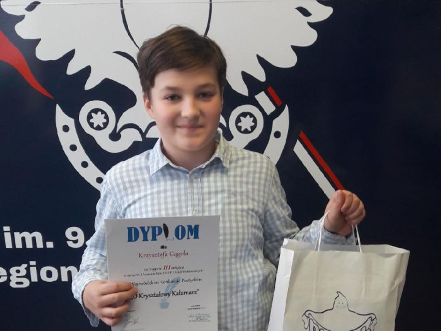 Na co dzień Krzysztof uczęszcza do klasy VIII szkoły podstawowej w Białopolu. Uznanie jury zdobył wierszami: „Zgubny telefon”, „Jesień” oraz „Myszka”. Zajął trzecie miejsce. To niewątpliwy sukces. Jego znaczenie wydaje się tym większe, że w bitwie na pióra brało udział w sumie 62 uczestników z 22 szkół.