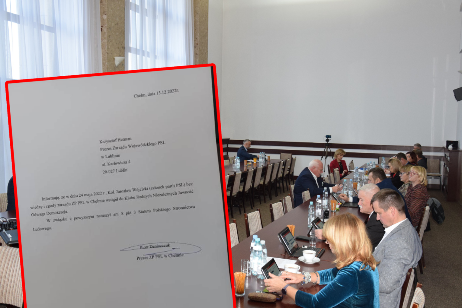 - Informuję, że 5 grudnia br. składam rezygnację z członkostwa w Polskim Stronnictwie Ludowym. Rezygnuję z funkcji prezesa ZG PSL w Chełmie. Wszystkie moje obowiązki związane z działalnością statutową jako Prezes Gminny PSL przekazuję wiceprezesom[…]. Po 22 latach aktywnej działalności na rzecz Polskiego Stronnictwa Ludowego nie jest to łatwa decyzja ani dla mnie, ani dla moich najbliższych. Niestety, nie widzę siebie dalej w jednym szeregu z takimi ludźmi jak Pan Piotr Deniszczuk – Prezes ZP PSL w Chełmie i jednocześnie Starosta Chełmski. Całej organizacji życzę jak najlepiej, pamiętajcie, że zawsze możecie na mnie liczyć – informuje w swoim piśmie radny Wójcicki.