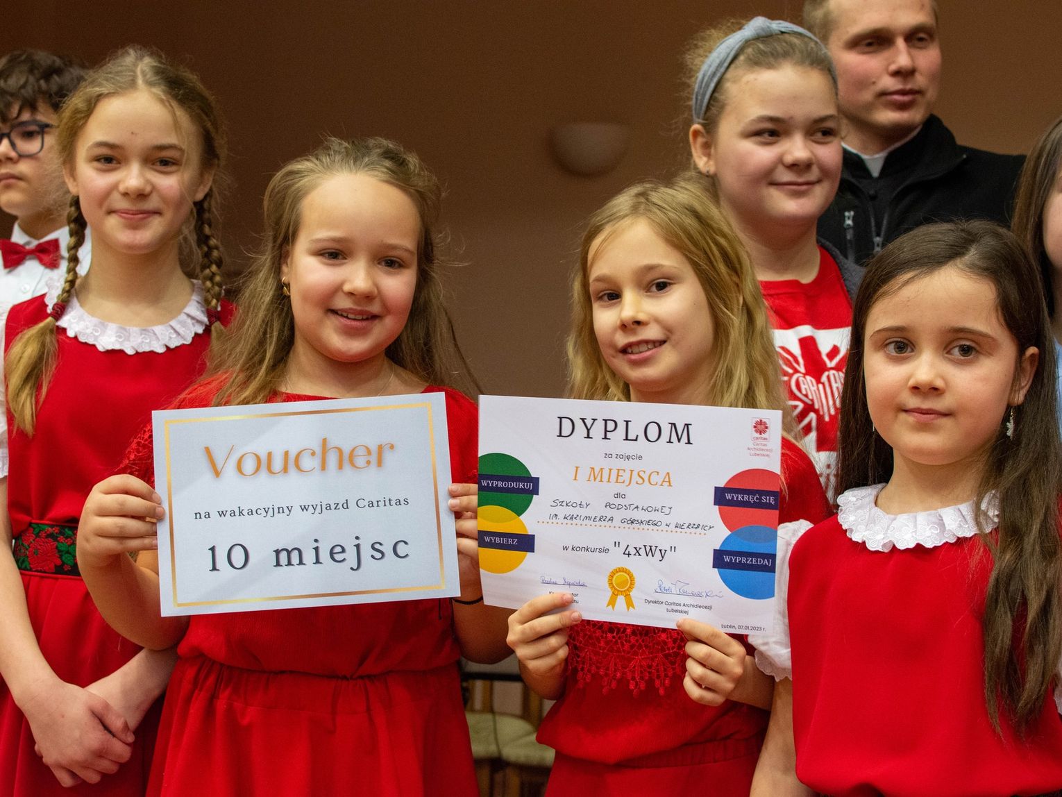 -W konkursach organizowanych przez Caritas Archidiecezji Lubelskiej uczestniczymy od kilku lat. W ramach konkursowych zadań wykonaliśmy ponad 700 kartek bożonarodzeniowych. Przekazaliśmy również do krasnostawskiego domowego hospicjum środki opatrunkowe w ilości ok. 1300 sztuk, a zakupiliśmy je dzięki środkom, jakie uzbieraliśmy z kolei podczas naszego szkolnego Dnia Papieskiego. Dla hospicjum przygotowaliśmy również ozdoby świąteczne oraz paczki żywnościowe. Inną akcją, w jaką włączaliśmy się w ostatnim czasie, była zbiórka nakrętek. Nakrętki, ok. 180 kg, zostaną przeznaczone na potrzeby jednego z uczniów z naszej gminy. Dzięki nim chłopiec będzie mógł uczestniczyć w zajęciach rehabilitacyjnych – wyjaśnia Halina Rybaczuk, katechetka, opiekunka koła w Wierzbicy.
