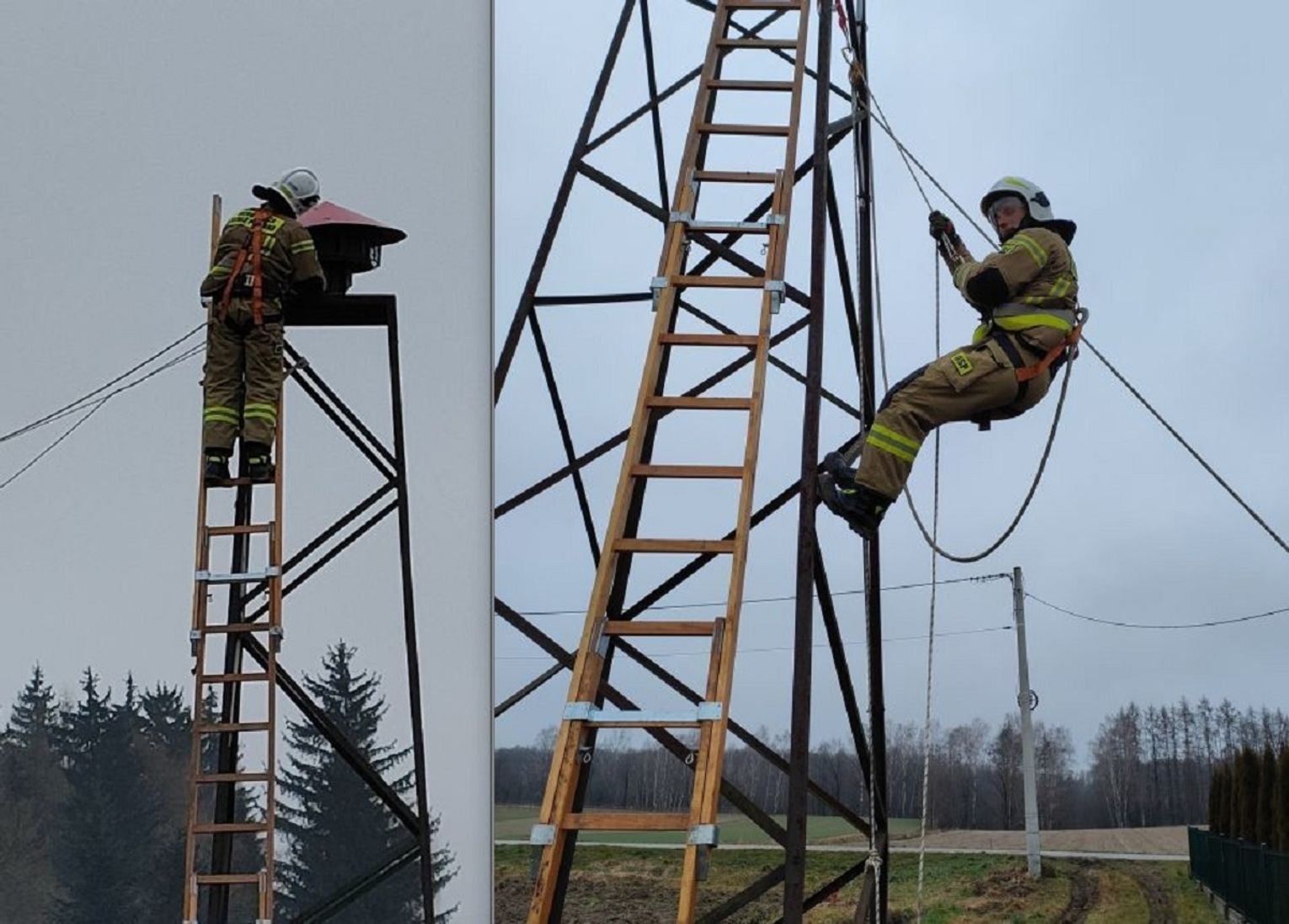 - Burza mózgów zaowocowała przeprowadzeniem ćwiczeń wysokościowych z użyciem dostępnego w naszej jednostce sprzętu. Przy pomocy taśm, bloczków i linek oraz zabezpieczenia osobistego za pomocą szelek ratowniczych syrena została zamontowana - dodaje.