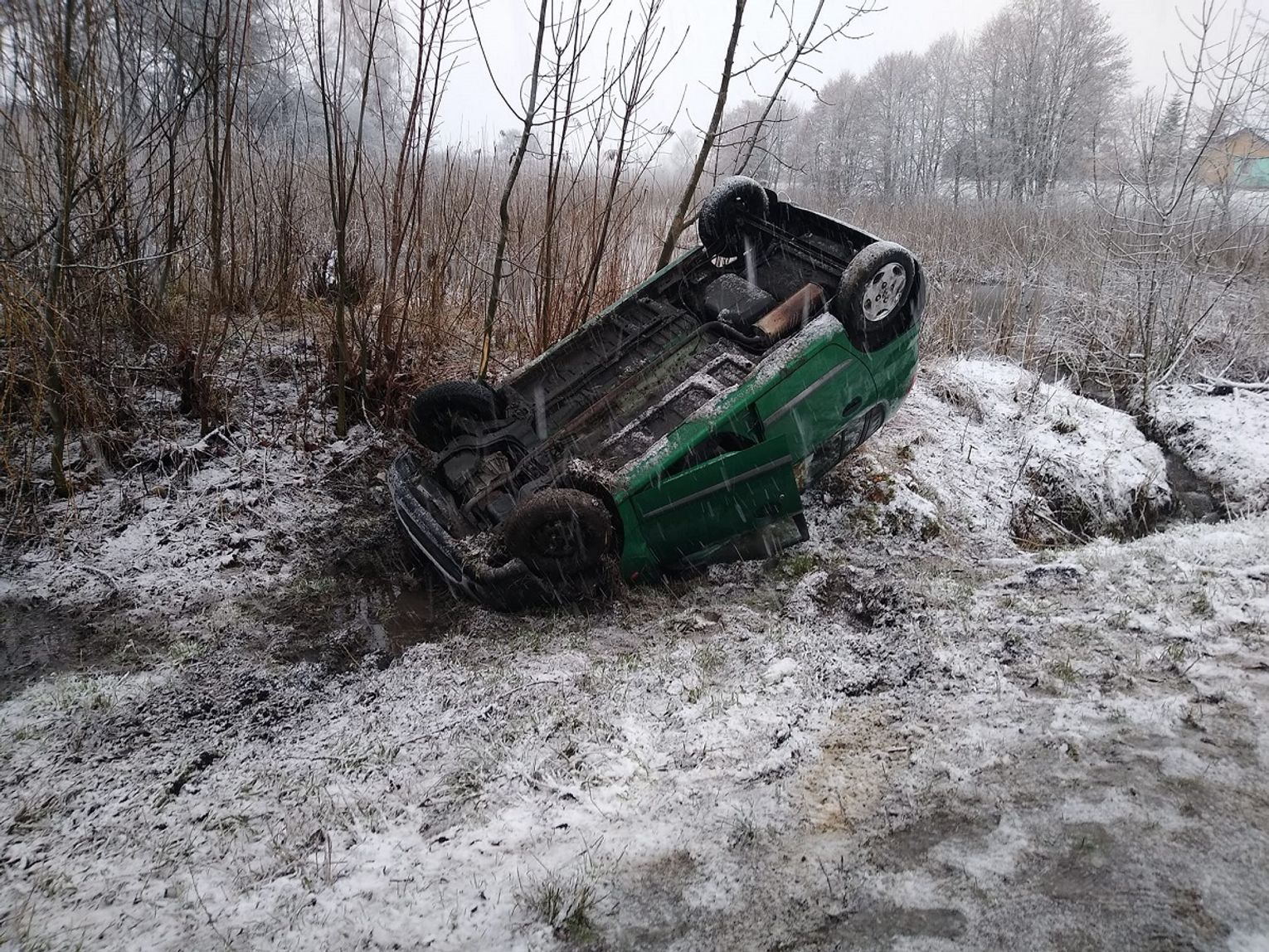 Do groźnie wyglądającego zdarzenia doszło w czwartek (19 stycznia) jeszcze przed zapadnięciem zmroku. Z przekazanych nam informacji wynika, że z drogi wojewódzkiej nr 812 wypadła osobówka, którą kierował starszy mężczyzna. Najprawdopodobniej nie dostosował prędkości i techniki jazdy do warunków panujących na drodze.