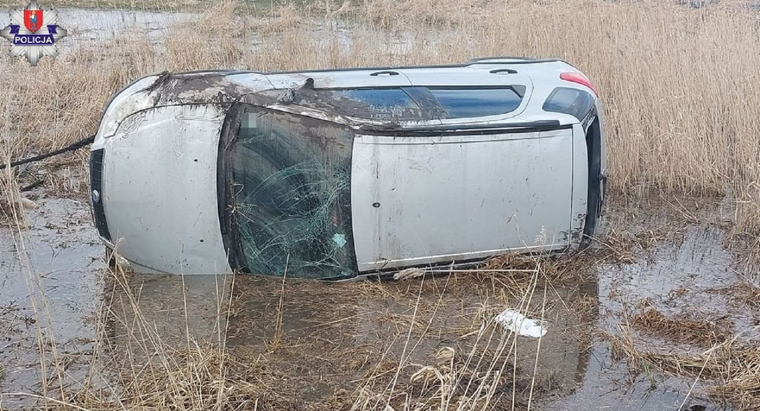 Do groźnego zdarzenia na drodze powiatowej między miejscowością Mokre a Żdanów doszło około godziny 12.30. Ze wstępnych ustaleń policjantów wynika, że kierujący fiatem 62-letni mieszkaniec gminy Zamość na zakręcie stracił panowanie nad samochodem. Zjechał do rowu, fiat dachował. Mężczyzna jechał sam. O własnych siłach wyszedł z rozbitego auta.
