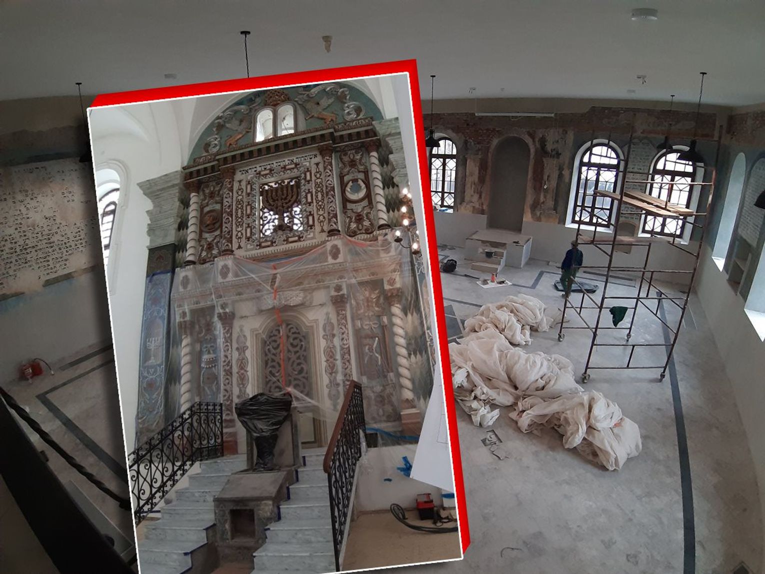 Prace ruszyły w kwietniu 2021 roku. Przez ten czas synagogi przeszły gruntowny lifting. Udało się m.in. dokonać renowacji polichromii, które szczególnie dobrze zachowały się w Małej Synagodze. Na sali męskiej na przykład, na wszystkich ścianach, zachowały się barwne polichromie oraz freski przedstawiające instrumenty muzyczne i zwierzęta. Były malowane techniką olejną.
