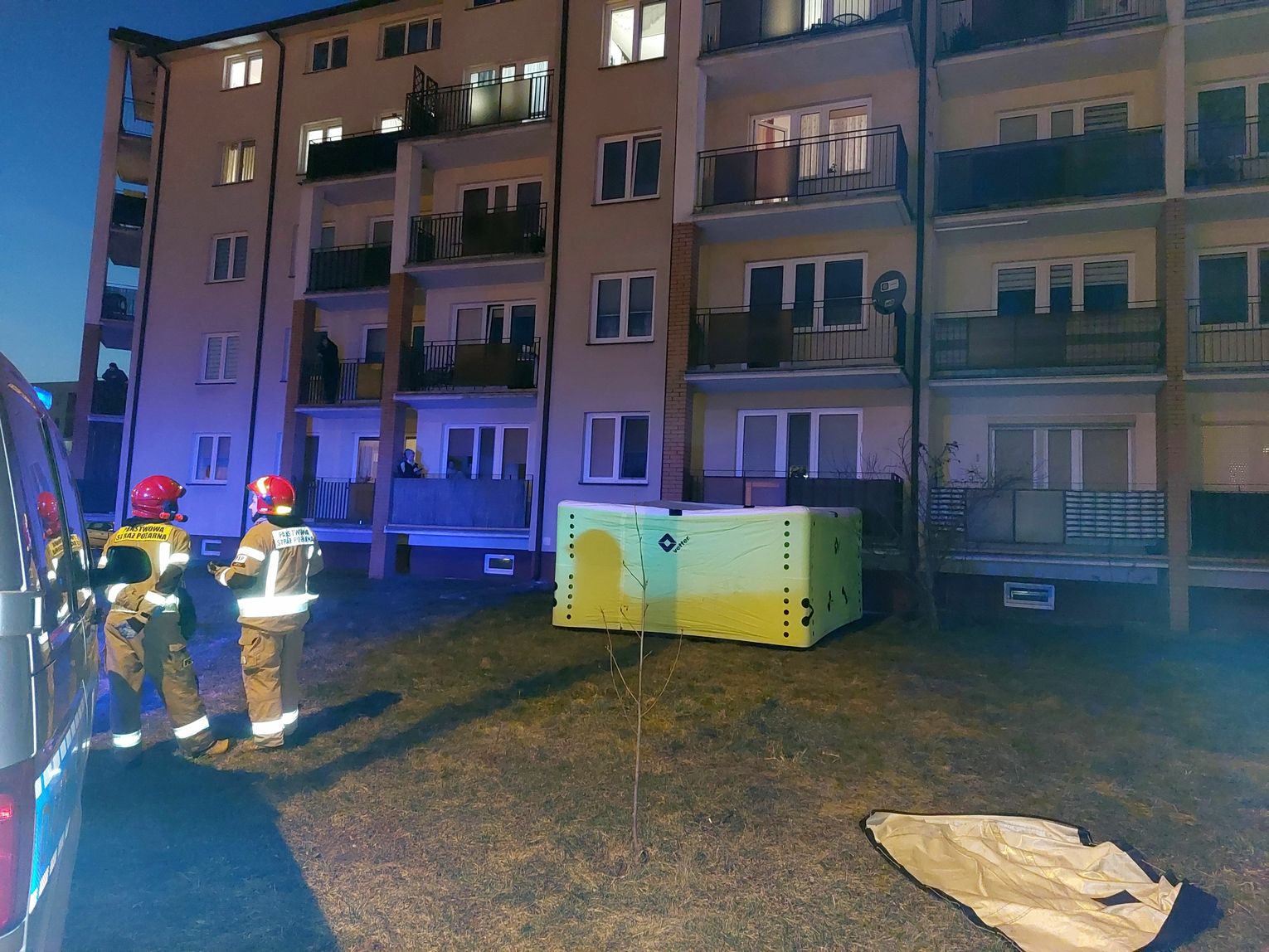 - Służbom zgłoszono, że na balustradzie balkonu siedział młody mężczyzna, z nogami przewieszonym z zewnętrznej strony. Po przyjeździe straży nie było go już na poręczy, ale ze względów bezpieczeństwa pod balkonem rozłożono poduszkę powietrzną – informuje dyżurny Komendy Miejskiej Państwowej Straży Pożarnej w Białej Podlaskiej.