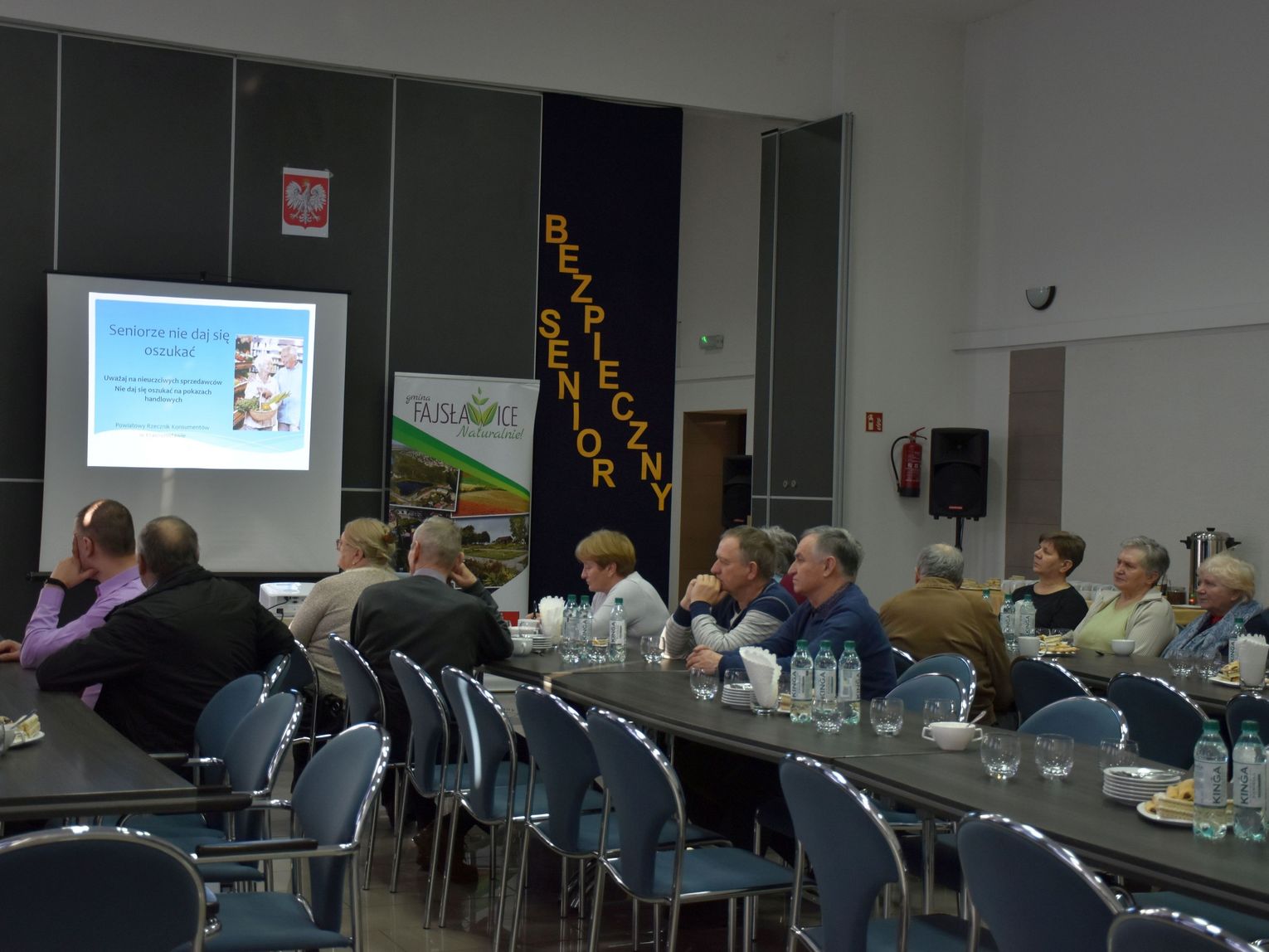 Spotkanie podzielone było na kilka części. W pierwszej z nich Krystyna Starczewska, powiatowy rzecznik praw konsumenta wraz z dzielnicowym z fajsławickiego posterunku policji młodszym aspirantem Mateuszem Sawą szczegółowo przedstawili najczęstsze sposoby działania oszustów. Uczulali zebranych na szczególną ostrożność w sytuacjach, które wiążą się ze sferą finansów i koniecznością weryfikacji informacji przedstawianych przez potencjalnego oszusta.