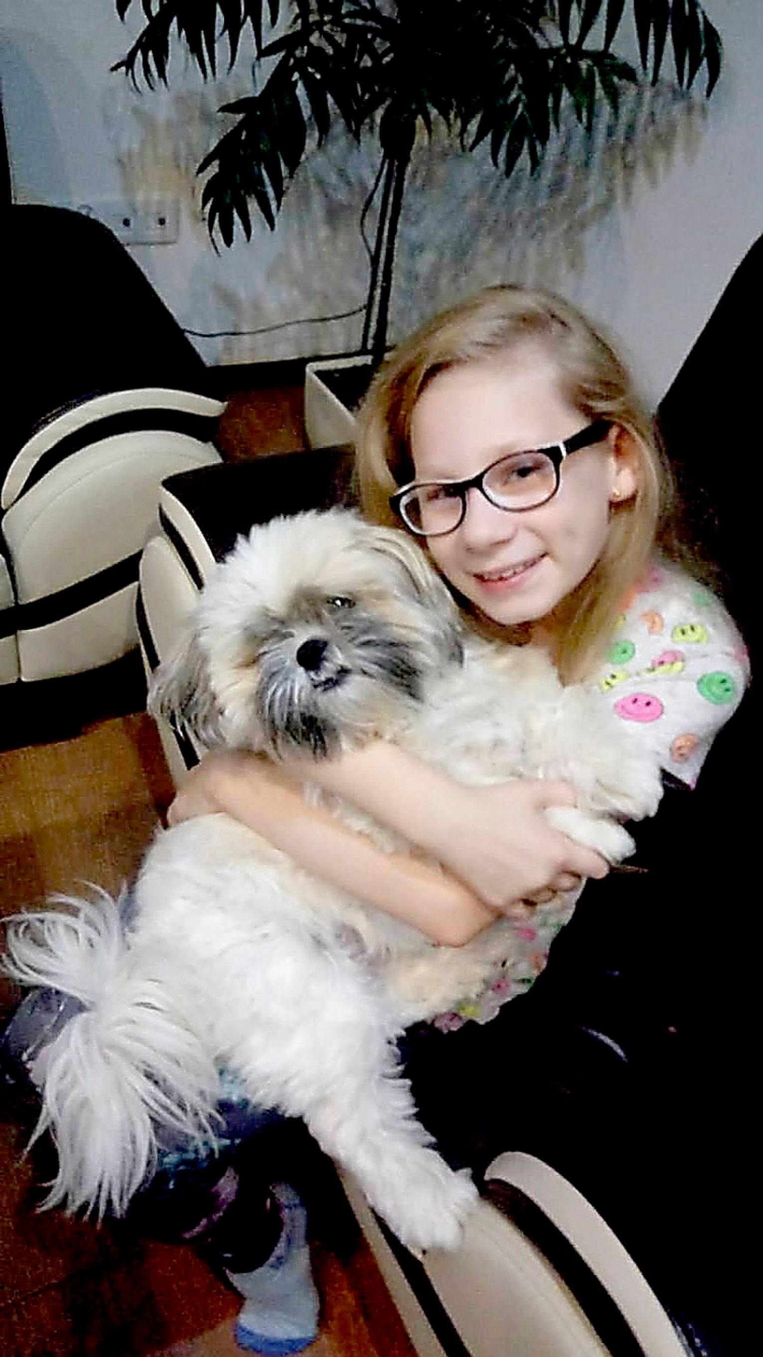 Pusia jest w rodzinie Tyszerów, odkąd skończyła 6 tygodni. Jest najlepszą przyjaciółką Mai. Piesek uwielbia się przytulać, jest bardzo towarzyski, nie lubi zostawać sam w domu. Jak tylko Maja wróci ze szkoły, nie odstępuje jej na krok.