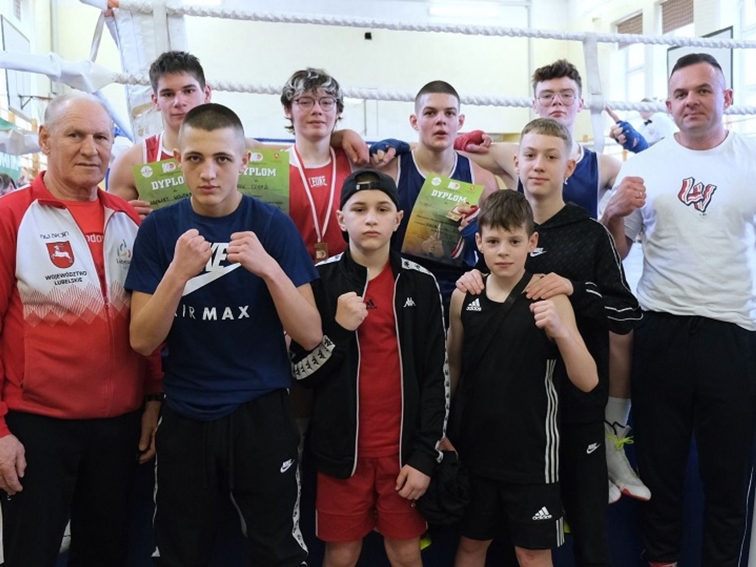 Najwięcej medali spośród wszystkich klubów startujących w Mistrzostwach Okręgu Lubelskiego wywalczyli reprezentanci MKS Olimp Chełm. Wygrali wszystkie dziewięć pojedynków, w tym aż sześć przed czasem. Wśród juniorów w kat. +92 kg Filip Bachanowicz pokonał już w pierwszej rundzie Marka Szybalskiego ze Sparty Kraśnik. Równie szybko kadet Kacper Frymus wygrał z Bartoszem Przybyszem (Paco Lublin) w kat. 57 kg, a junior Igor Rondoś z Jakubem Telmanem (Sparta Kraśnik) w kat. 80 kg. Igor zdobył ostatecznie złoty medal, kładąc na łopatki Miłosza Węzika (Berej Boxing), z kolei Kacper Frymus pokonał również Patryka Moskwę z Paco Lublin, awansując do finału turnieju między województwem lubelskim a śląskim. W drugiej rundzie junior Arkadiusz Tołyż wygrał w kat. 63,5 kg z Patrykiem Chudzikiem (KSW Motor Lublin), a następnie sięgnął po złoto, nie dając szans Alanowi Mazurkowi (Hetman Zamość). W trzeciej brat Arka Marek Tołyż powalił Kubę Banaszkiewicza (Paco Lublin), a inny junior chełmskiego Olimpu Hubert Nowosad, w takim samym czasie pokonał Sviatoława Melena (Hetman Zamość) w kat. 75 kg.
